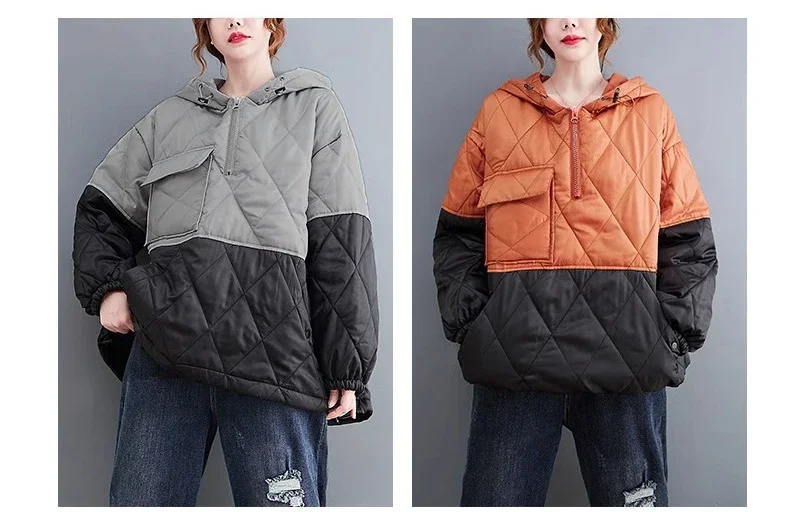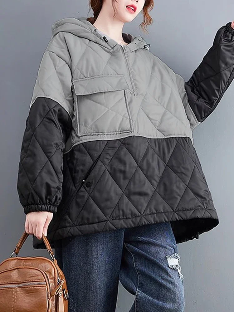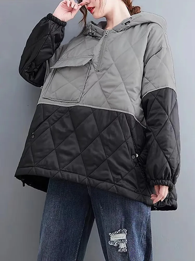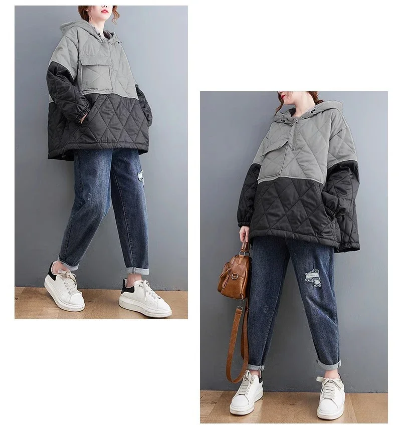 Felpe con cappuccio trapuntate calde e larghe alla moda