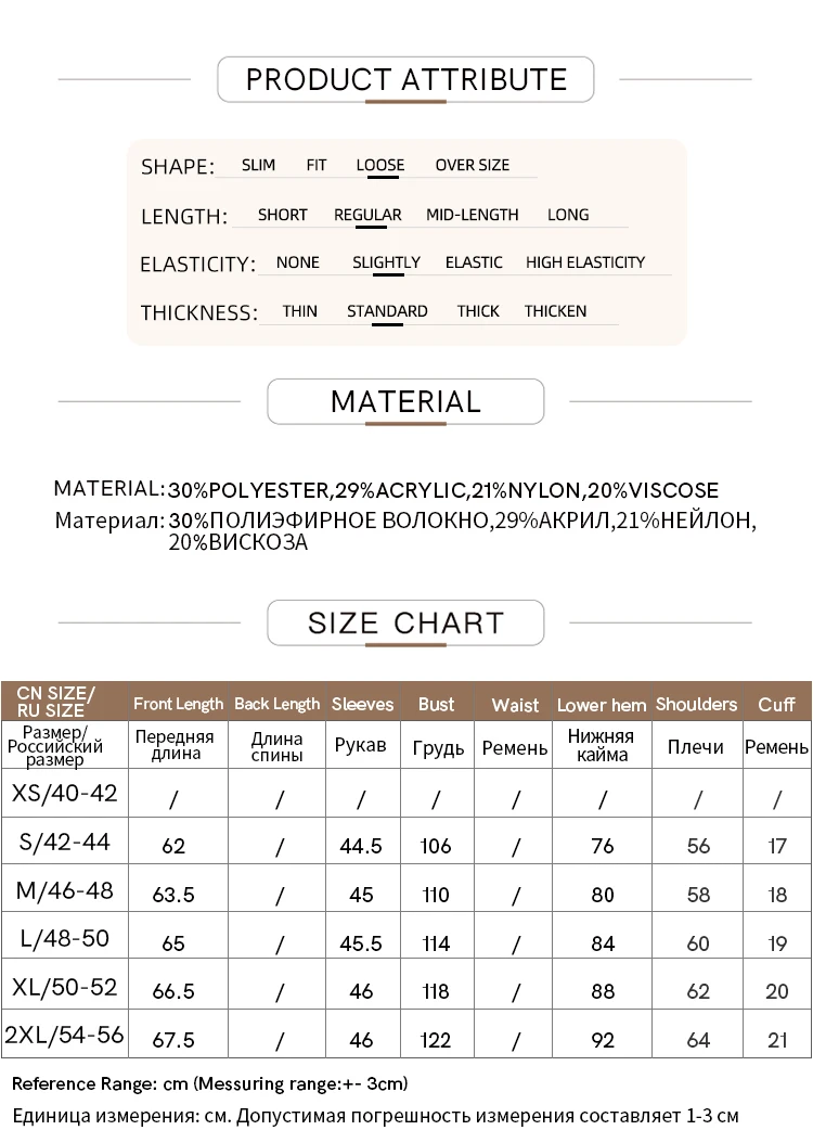 Mi è piaciuto molto il maglione, sia per il colore che per la consistenza, è morbido. Certo, mi sarebbe piaciuto che contenesse più fibre naturali. La taglia è perfetta. La consegna ha richiesto due settimane a San Pietroburgo, il che è positivo. Il negozio è valido, ordinerò di nuovo, la qualità è ottima.