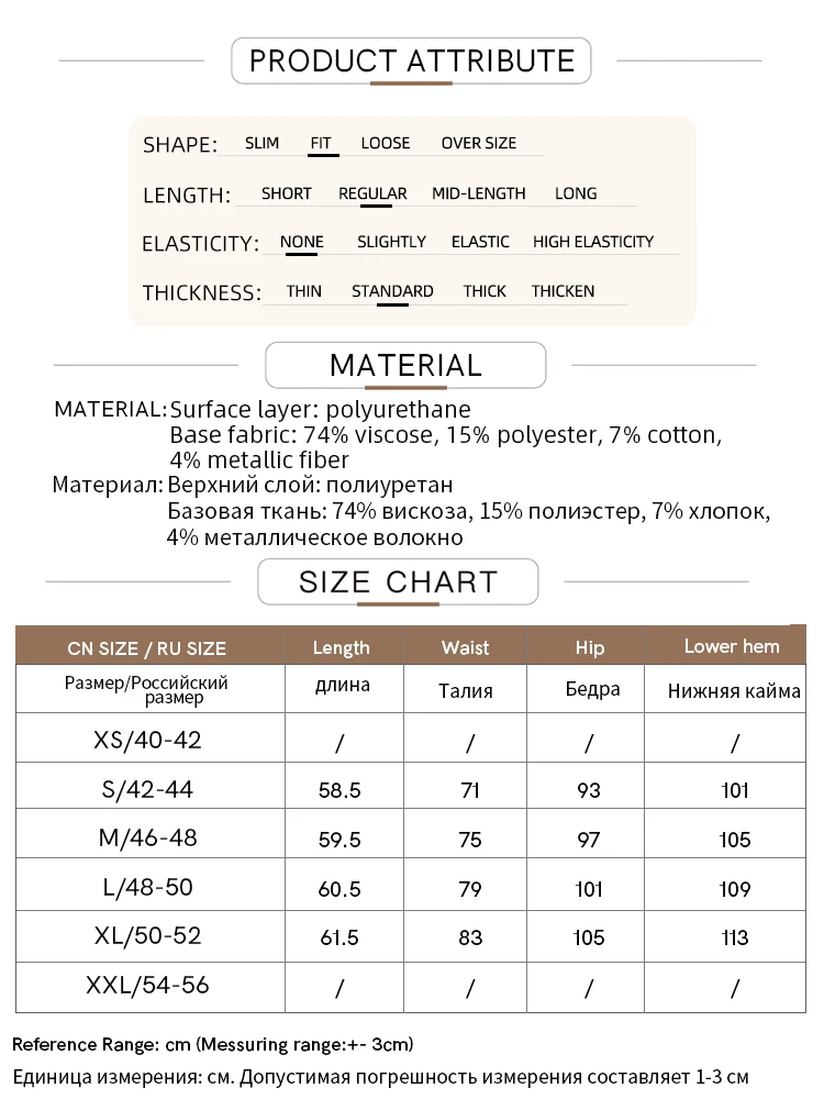 Beh, in generale, ho ricevuto la gonna velocemente. Il materiale è molto simile alla pelle, il tessuto sembra deliberatamente stropicciato, molto elegante. Per una taglia L (70-95), penso che dovrebbe essere indossata sui fianchi, altrimenti la vita è 5 cm troppo grande, non voglio cucirla, rovinerebbe il vista posteriore, le tasche e le spacchi. Ma, penso che se avessi preso la taglia M, i fianchi sarebbero aderenti. Probabilmente è progettata per una figura a rettangolo senza fianchi.