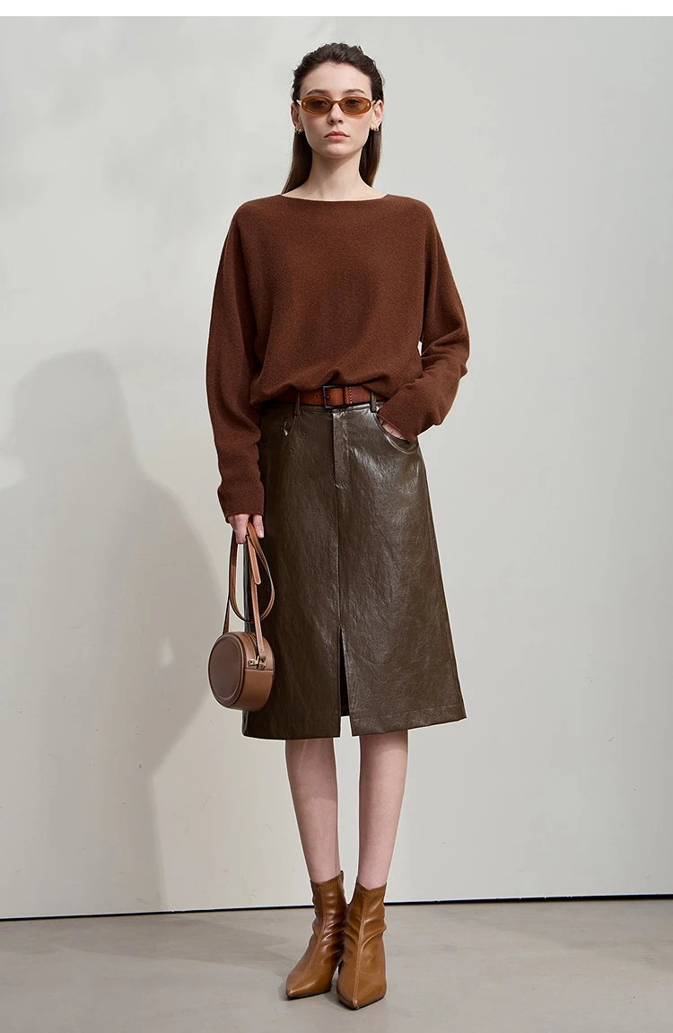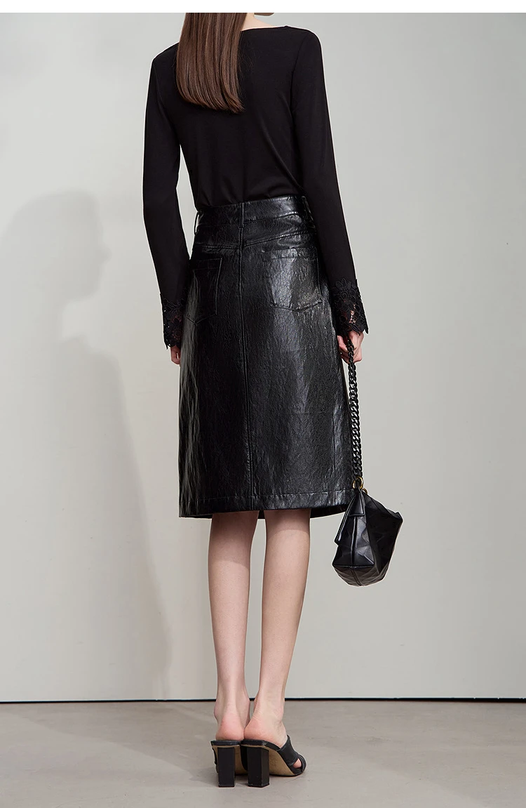 6 recensioni per AMII Minimalista PU Gonna in pelle per le donne 2025 Americano Retro Gonna al ginocchio Solid Nozioni di base Abbigliamento donna d’affari 12553014
