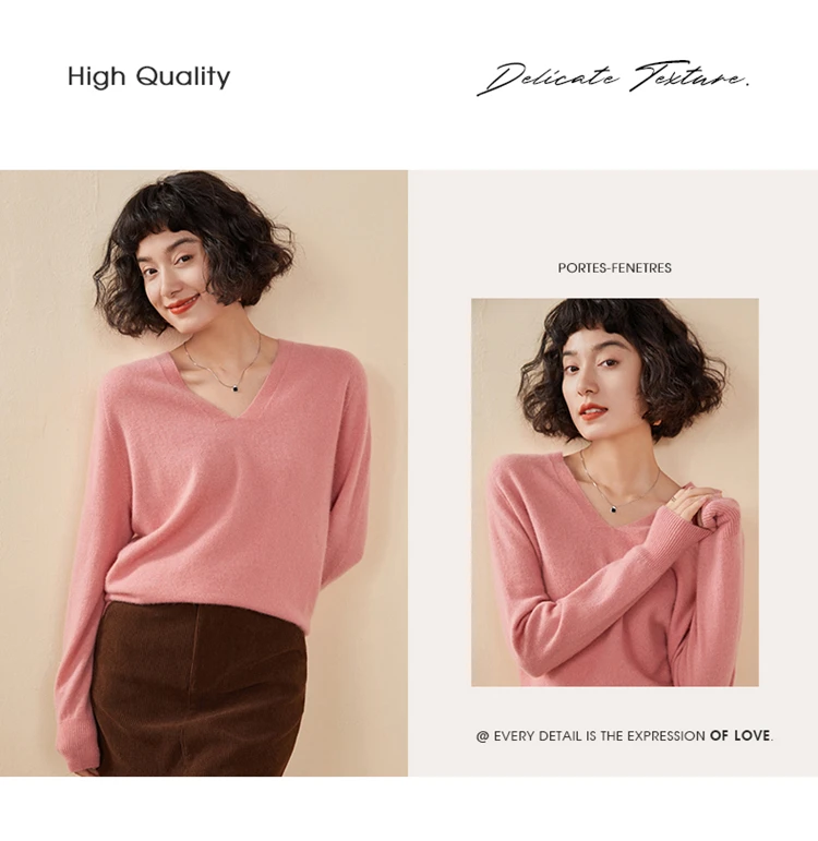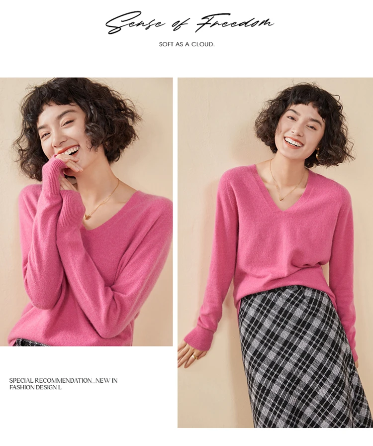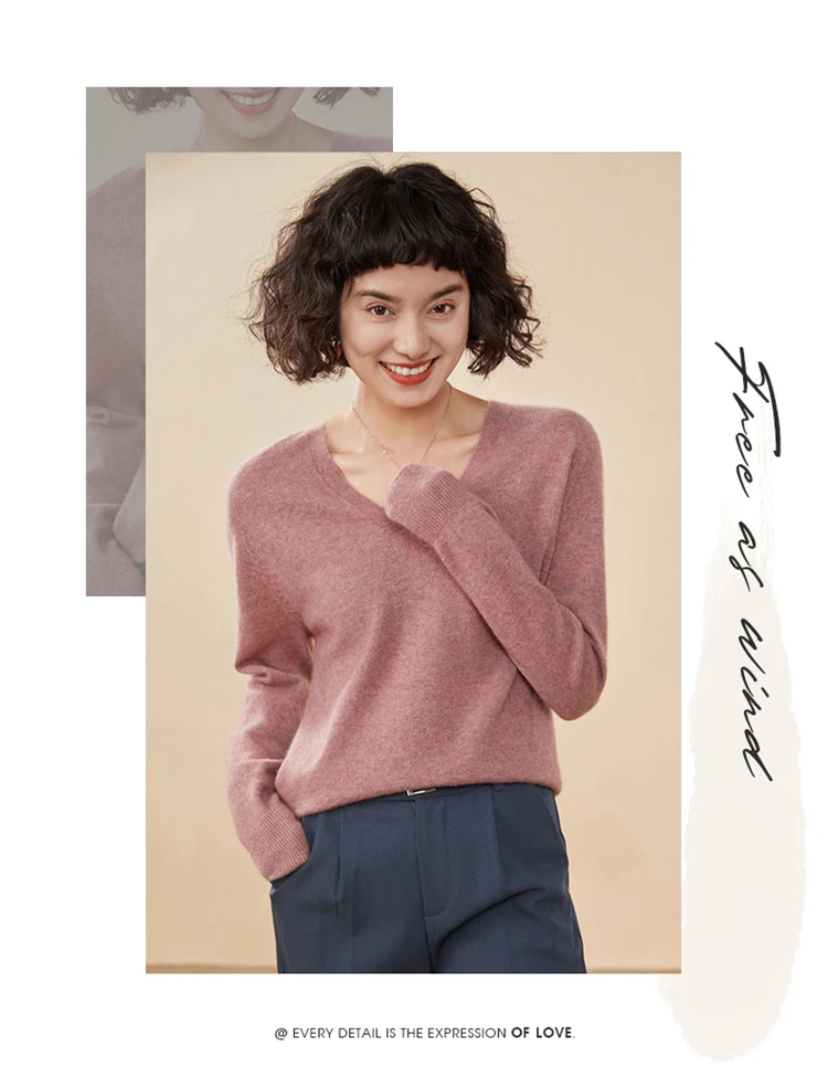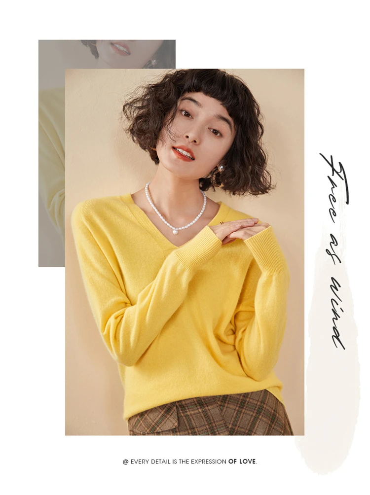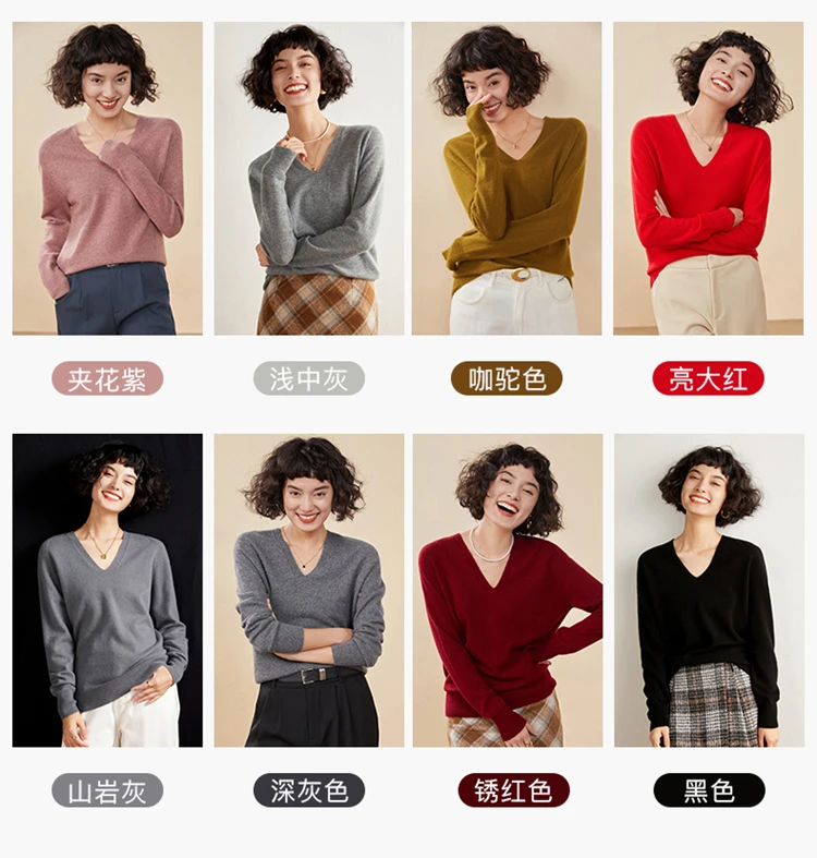 Autunno E Inverno delle Nuove Donne Maglione di Cachemire 100% Puro Cashmere Con Scollo A V Lavorato A Maglia Pullover A Maniche Lunghe di Vendita Caldo delle Donne Top