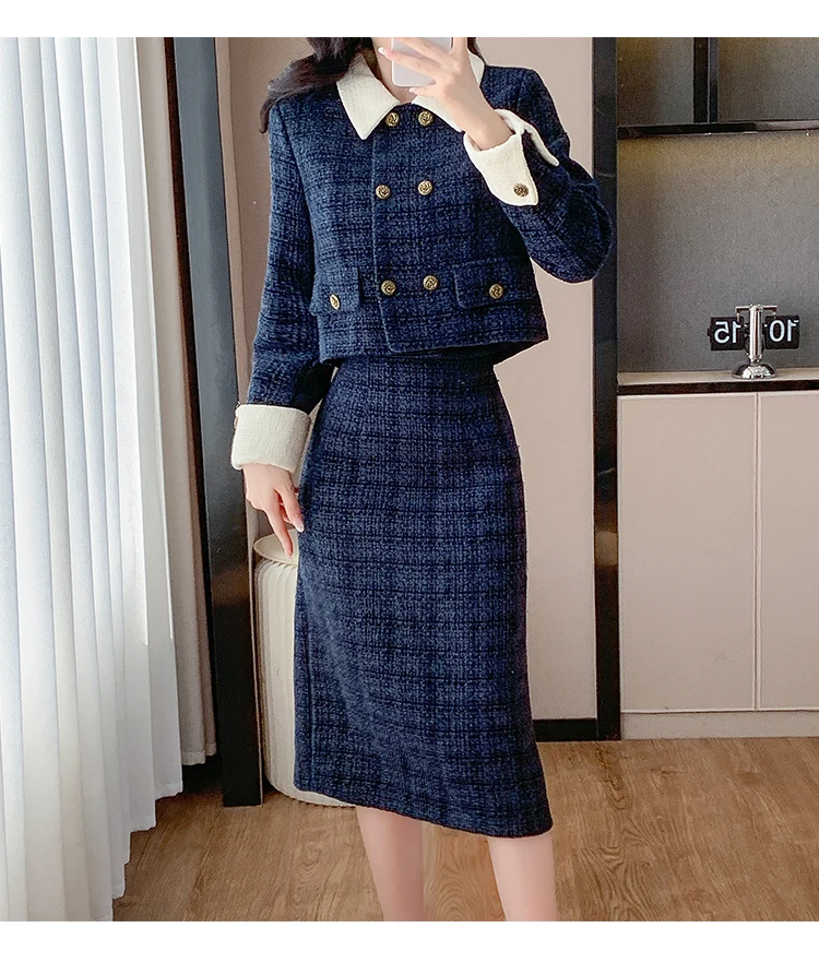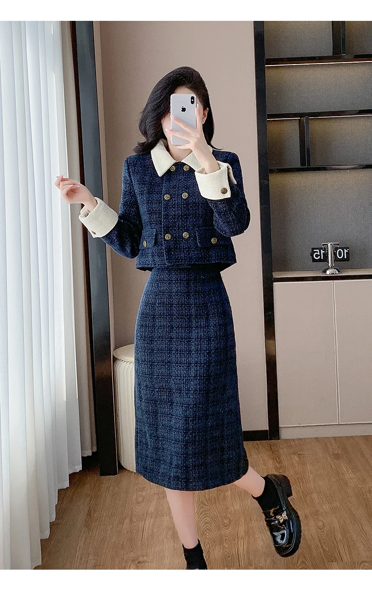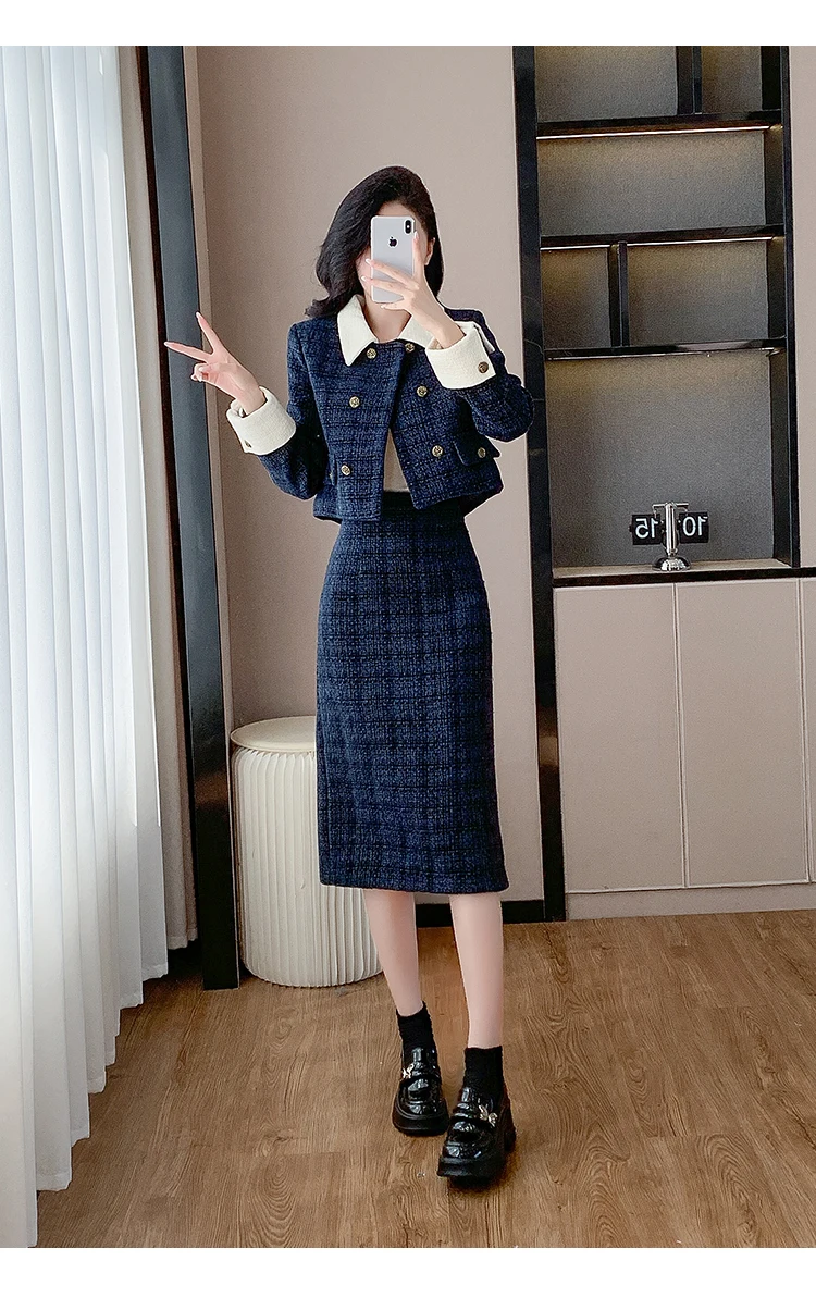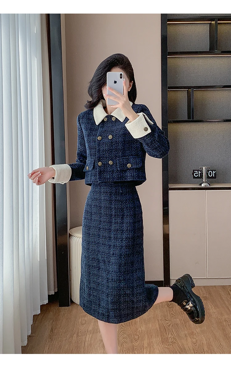 Recensisci per primo “Autunno e inverno nuovo risvolto abbinato al colore Tweed giacca da donna Socialite All-match elegante cappotto Top gonna Set di due pezzi” Annulla risposta