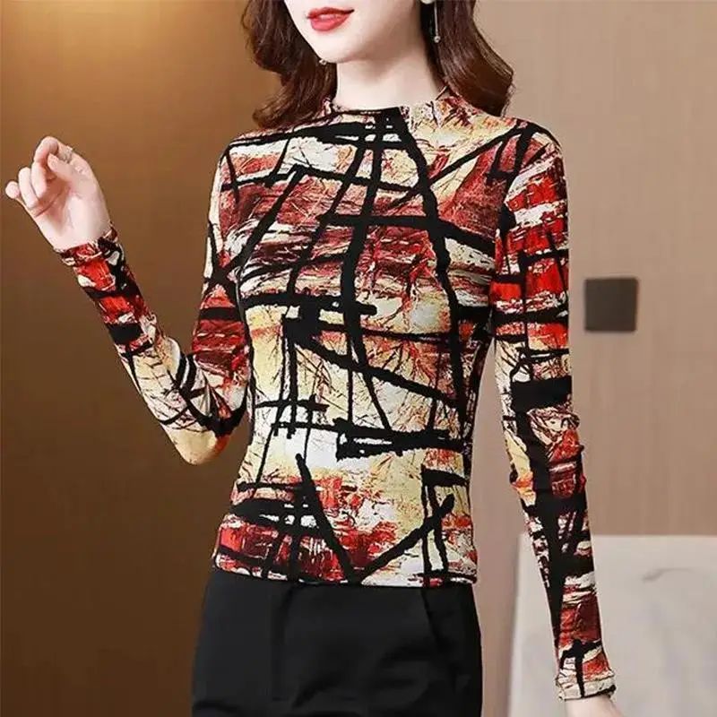 Autunno e inverno Pullover da donna girocollo Patchwork stampa sottile sottofondo moda Casual elegante pendolare manica lunga top