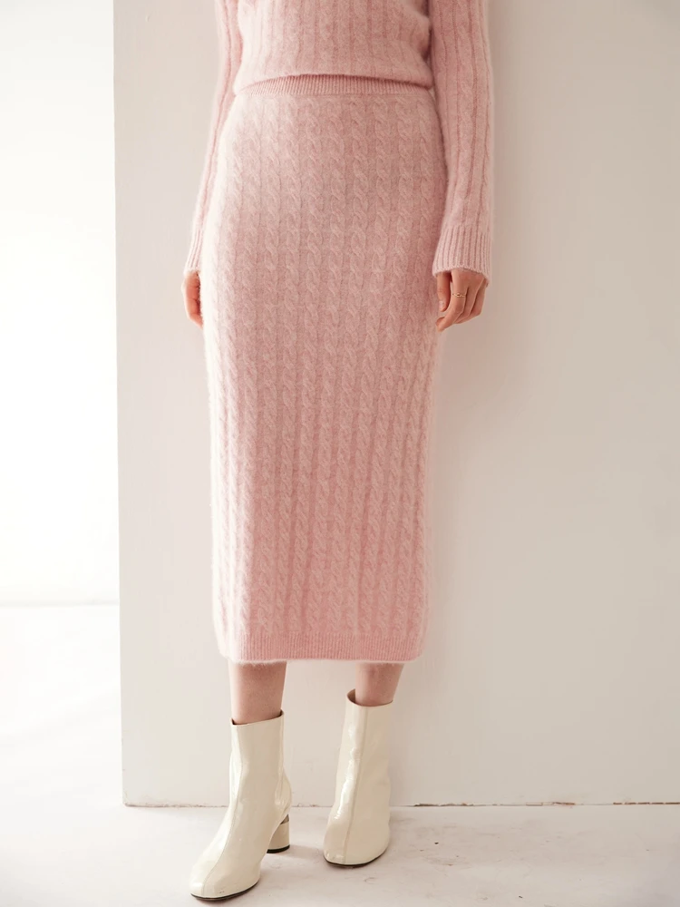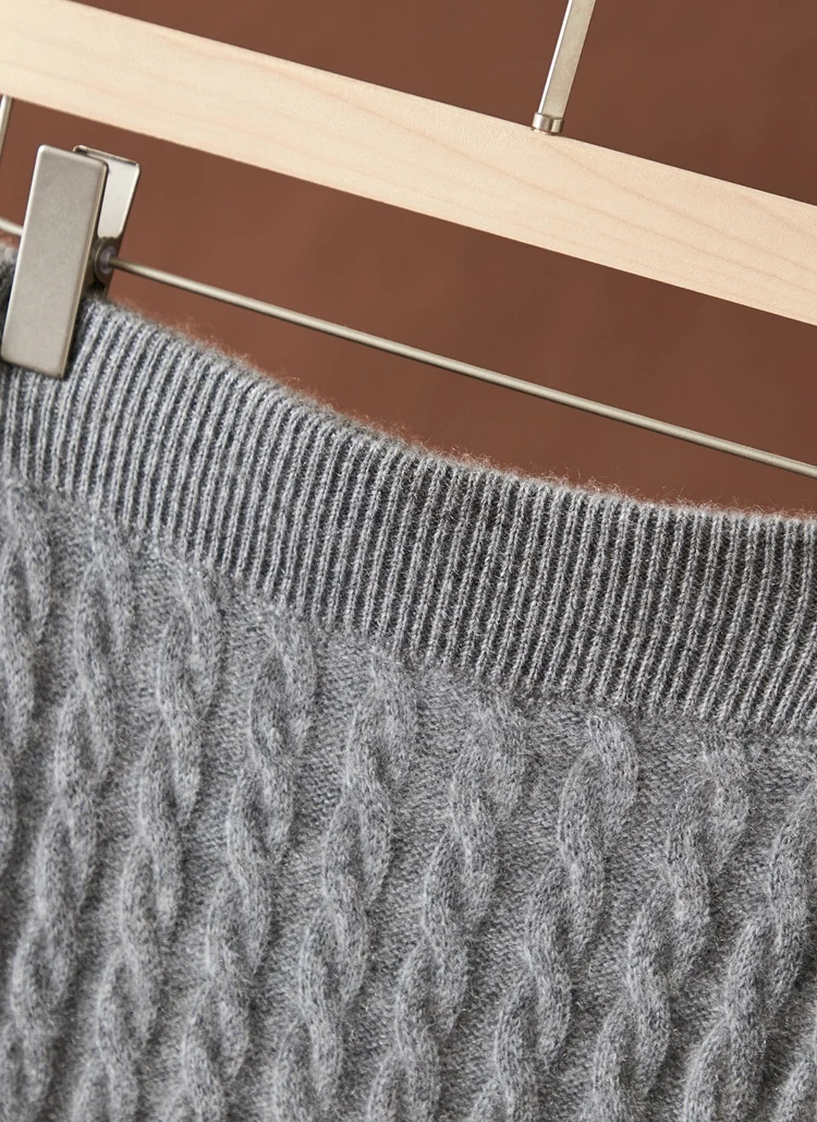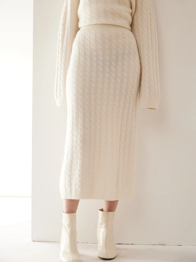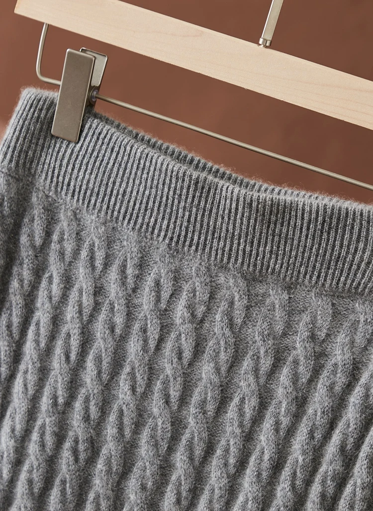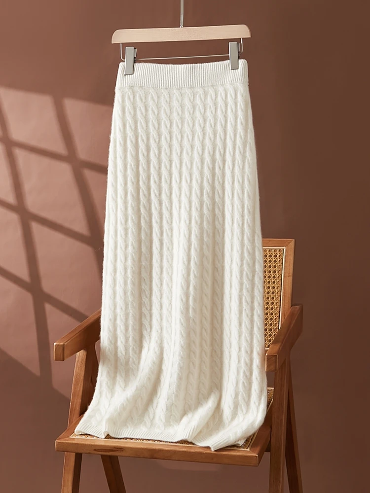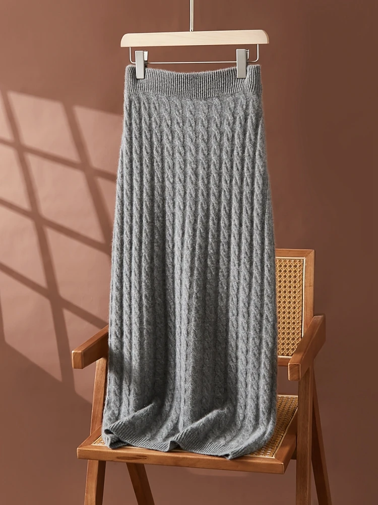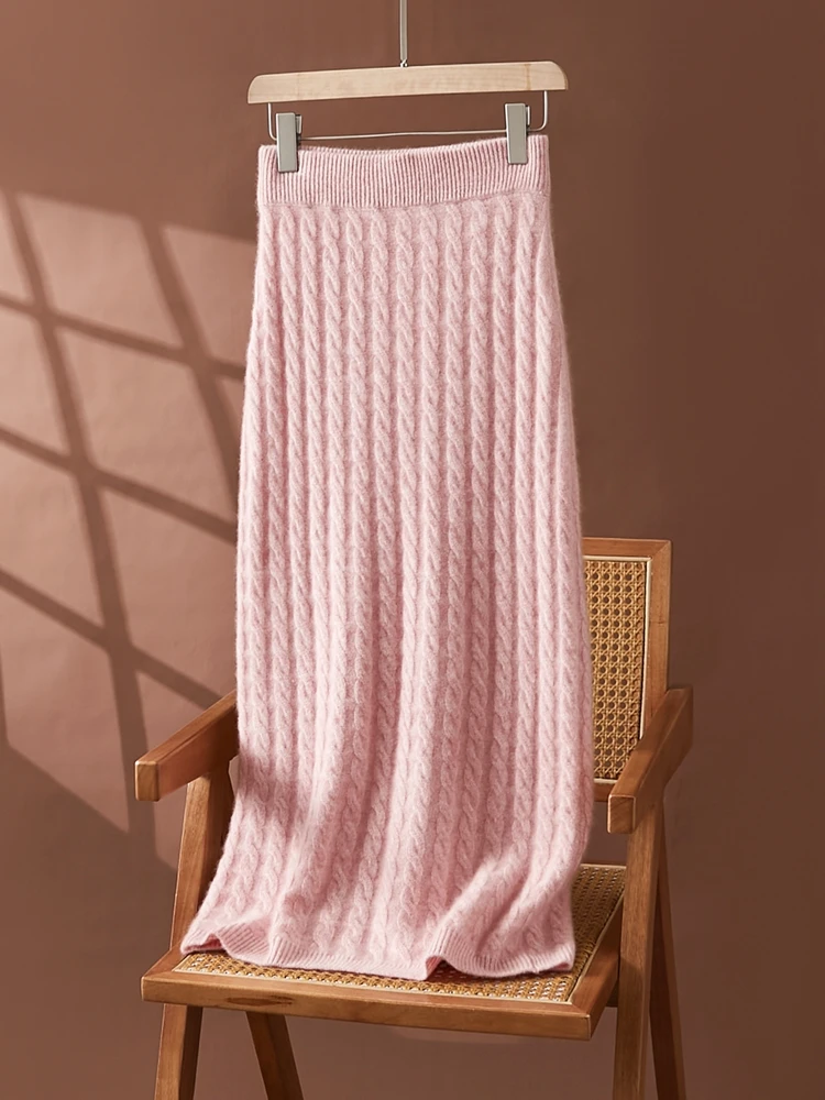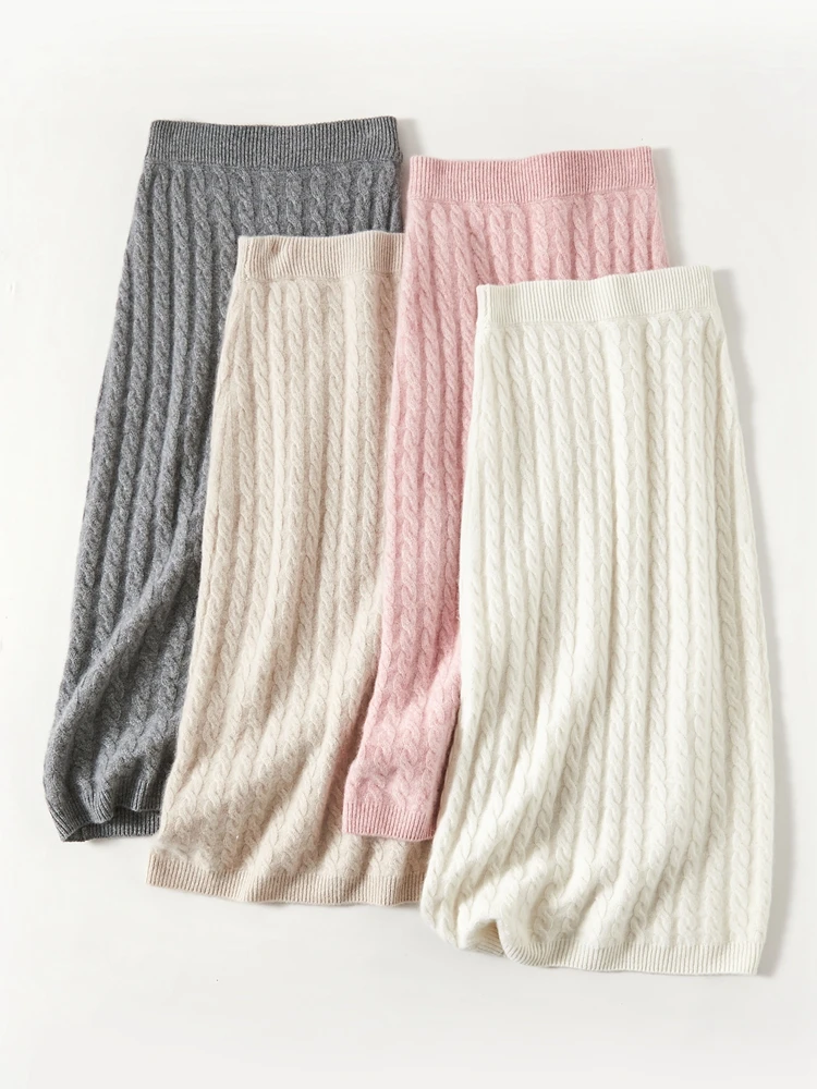 Autunno Inverno 100% Gonna in cashmere Donna Soild a metà polpaccio Vita alta Twist Flower Fit Abito lavorato a maglia dimagrante Leggero Lusso Elegante