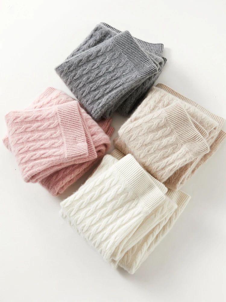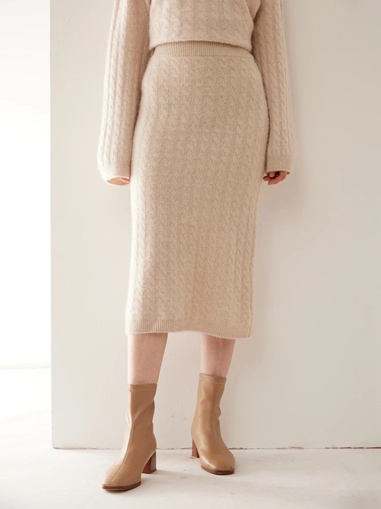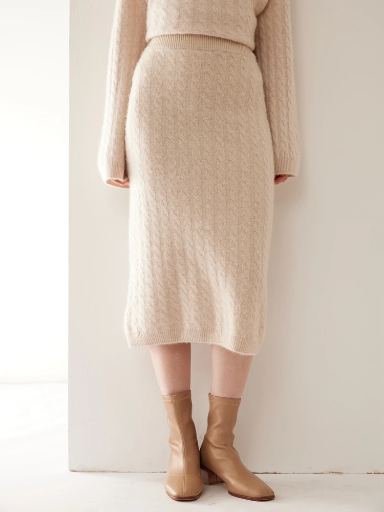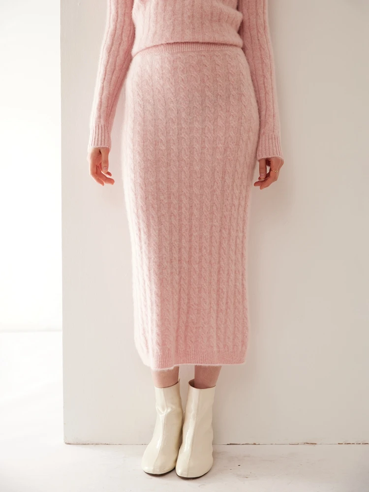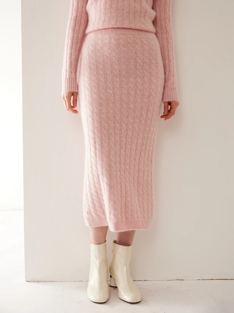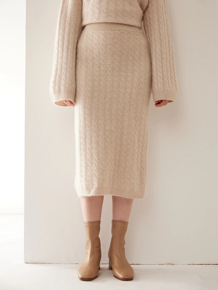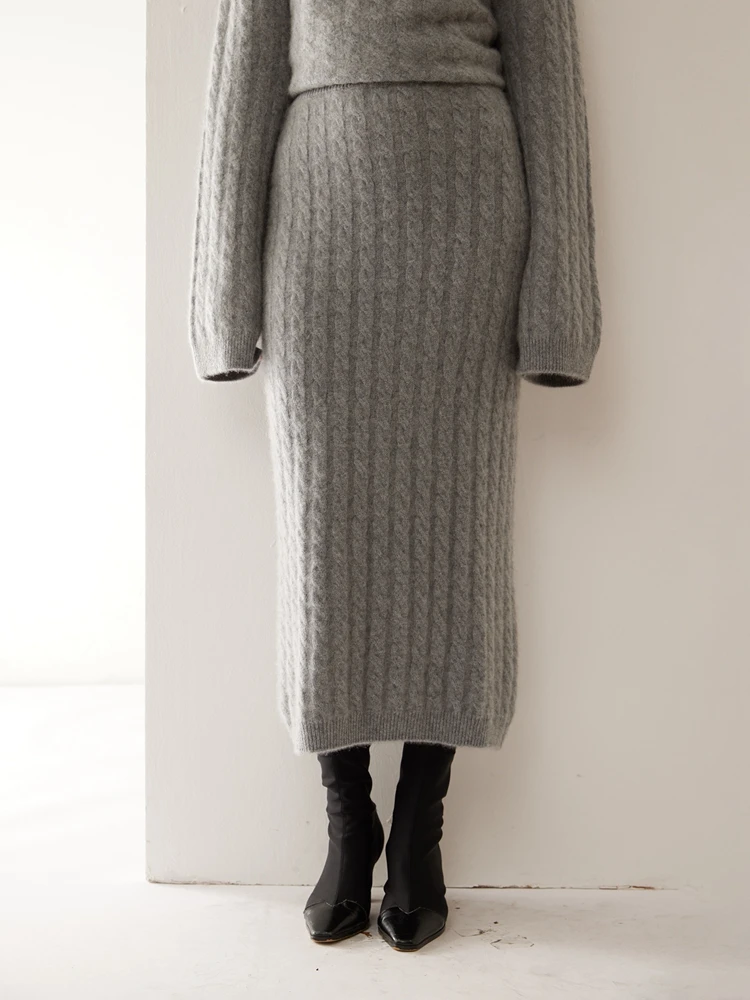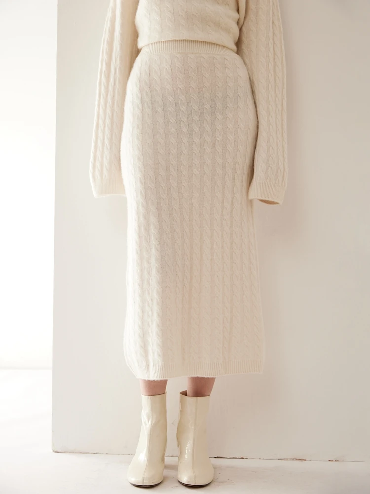 Autunno Inverno 100% Gonna in cashmere Donna Soild a metà polpaccio Vita alta Twist Flower Fit Abito lavorato a maglia dimagrante Leggero Lusso Elegante