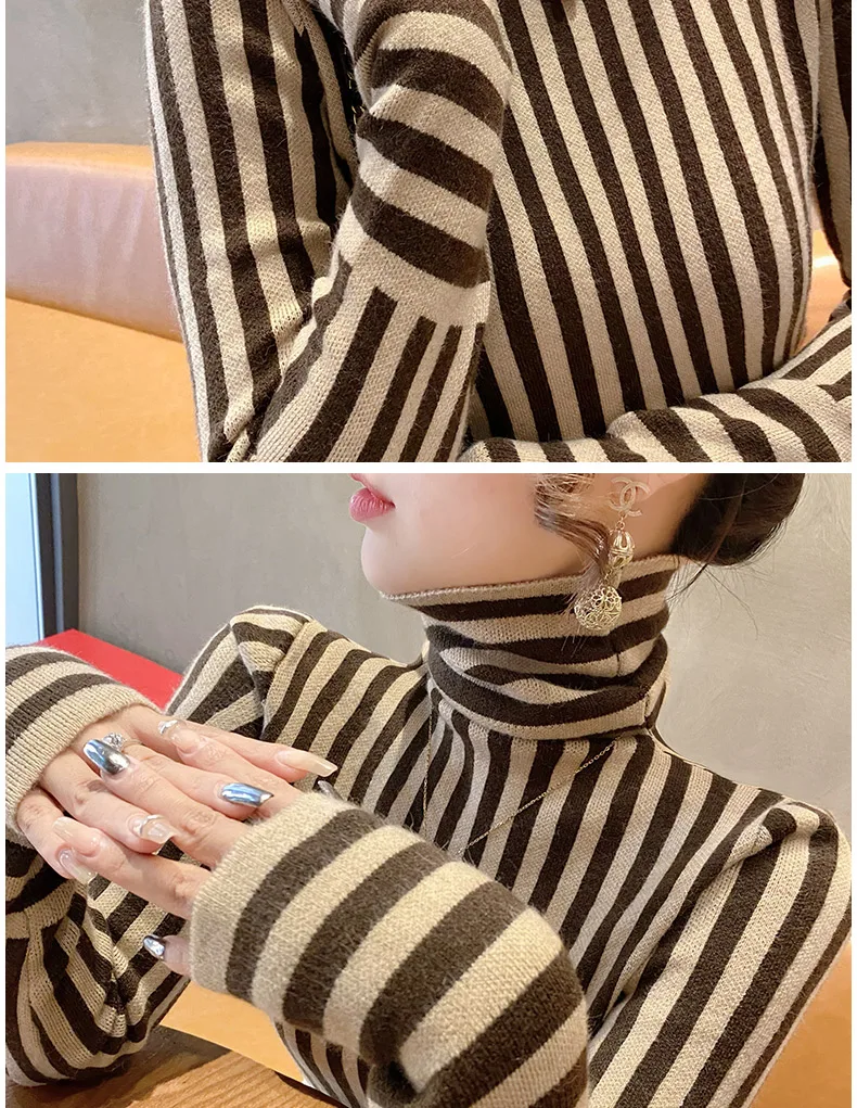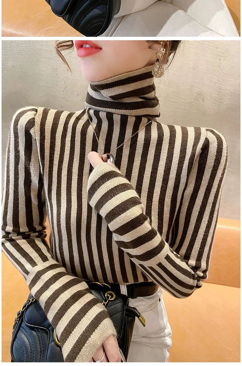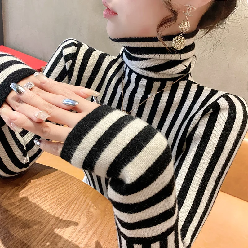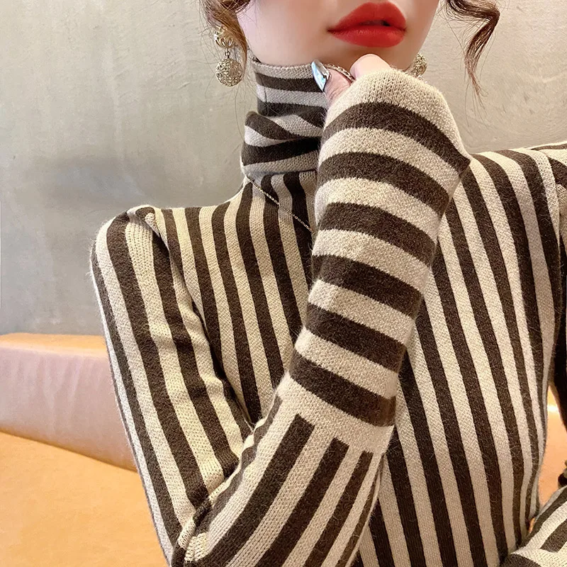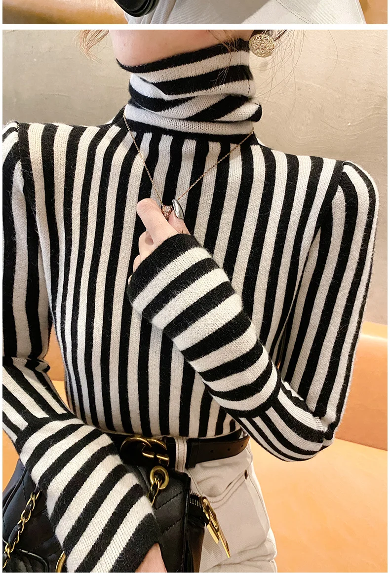Autunno Inverno Elegante All-match Pullover in maglia a righe Abbigliamento donna Moda Slim Dolcevita a maniche lunghe Pullover Lady Y2k Top