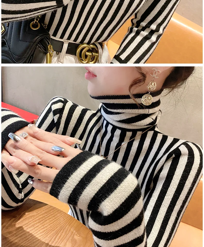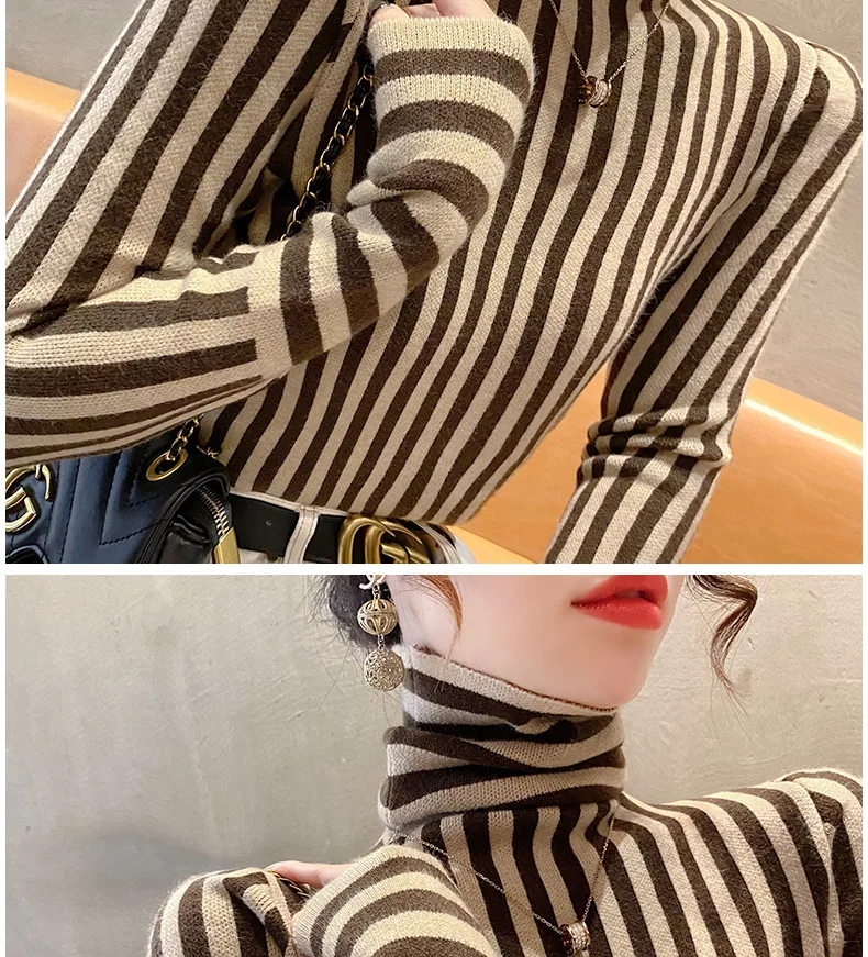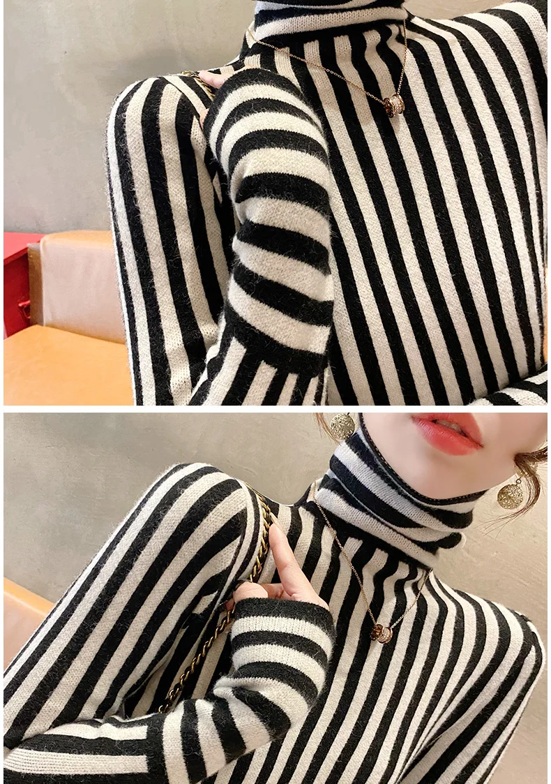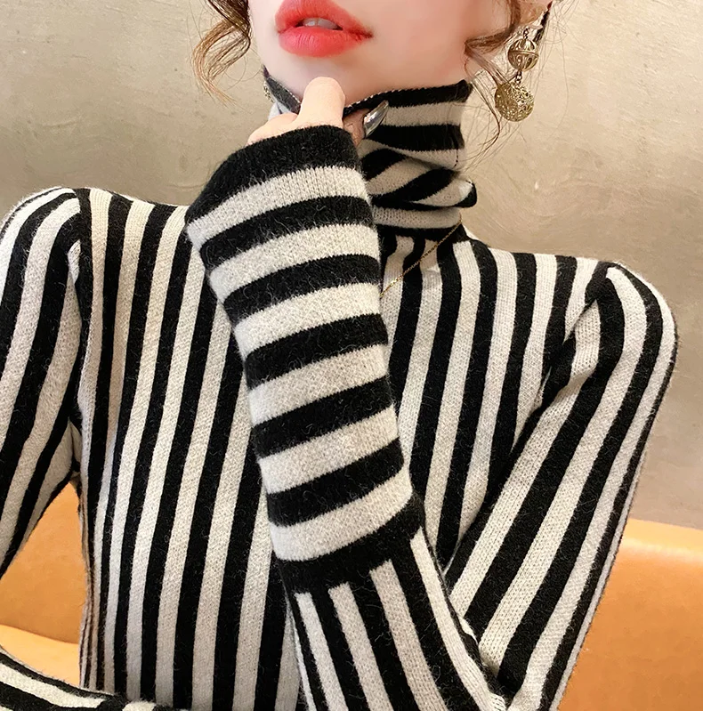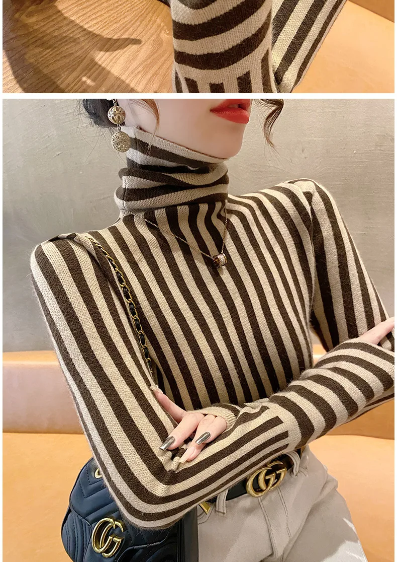 Autunno Inverno Elegante All-match Pullover in maglia a righe Abbigliamento donna Moda Slim Dolcevita a maniche lunghe Pullover Lady Y2k Top