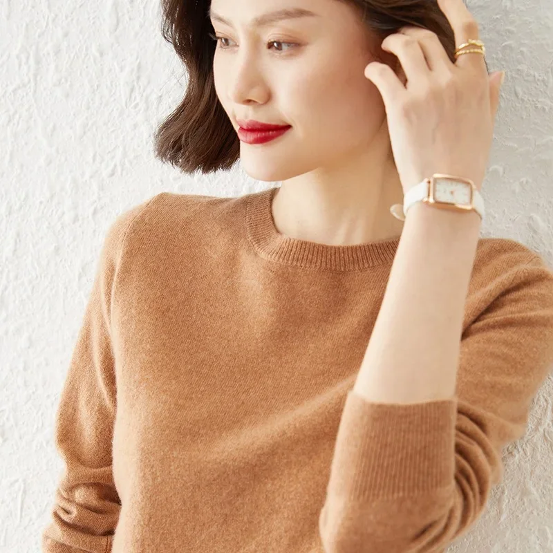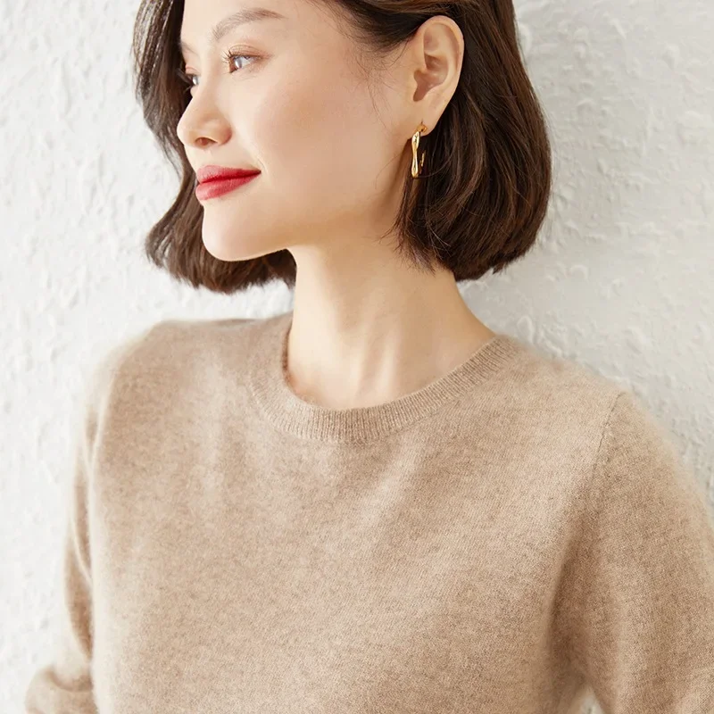 Autunno Inverno Maglione da donna O-Collo Cashmere Pullover solido Camicia con fondo sottile Manica lunga Casual Basic Pull Femme Maglione