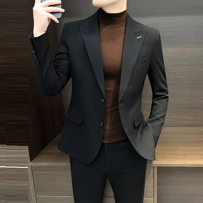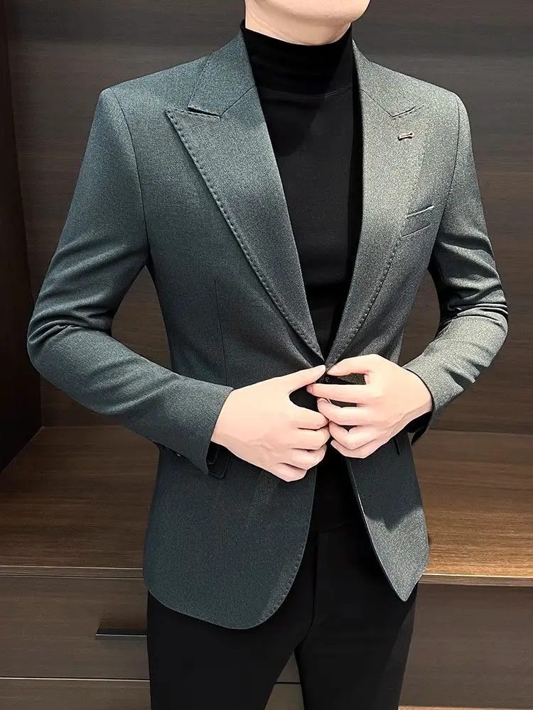 Autunno Inverno Moda Colletto rovesciato Manica lunga Tinta unita Pezzi Blazer Abbigliamento da uomo Bottoni coreani Tasche giovani Top