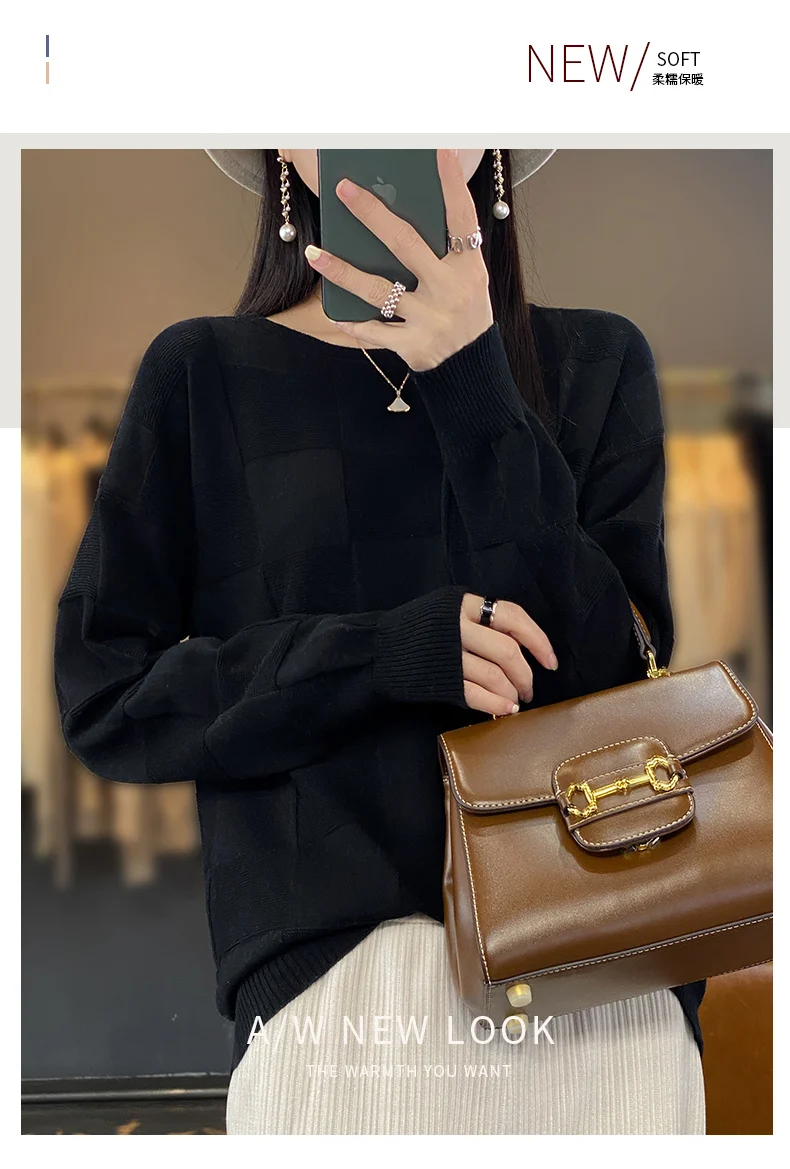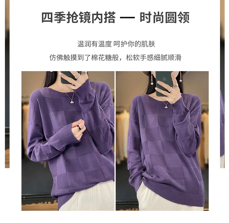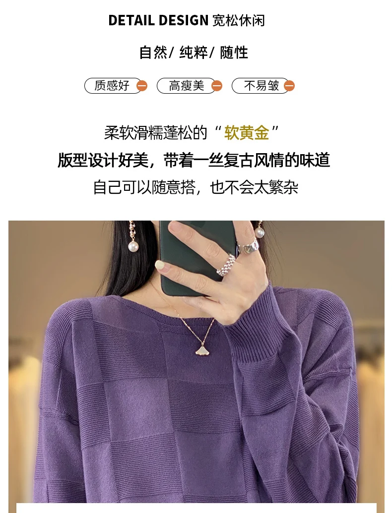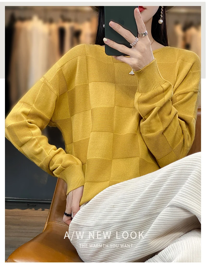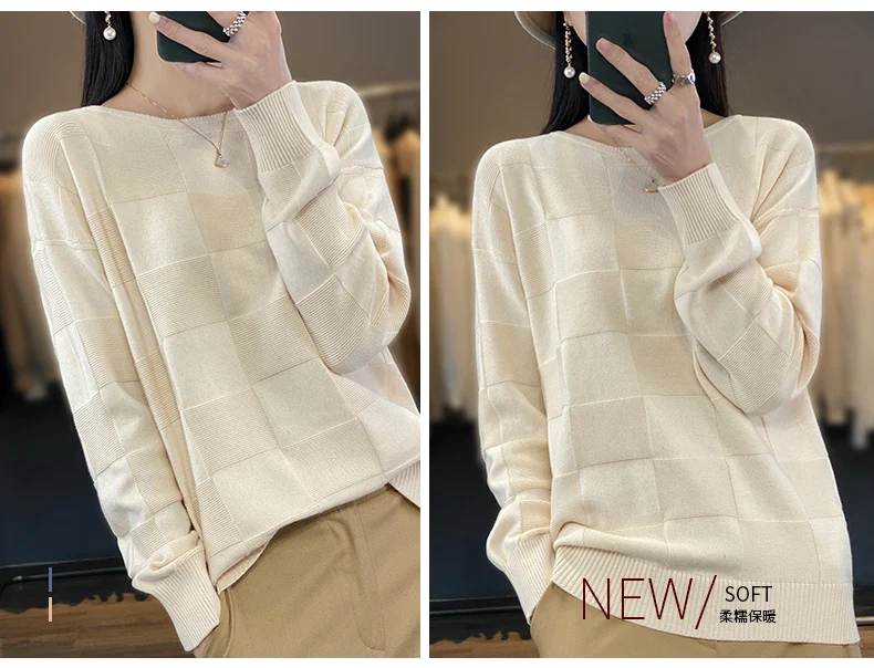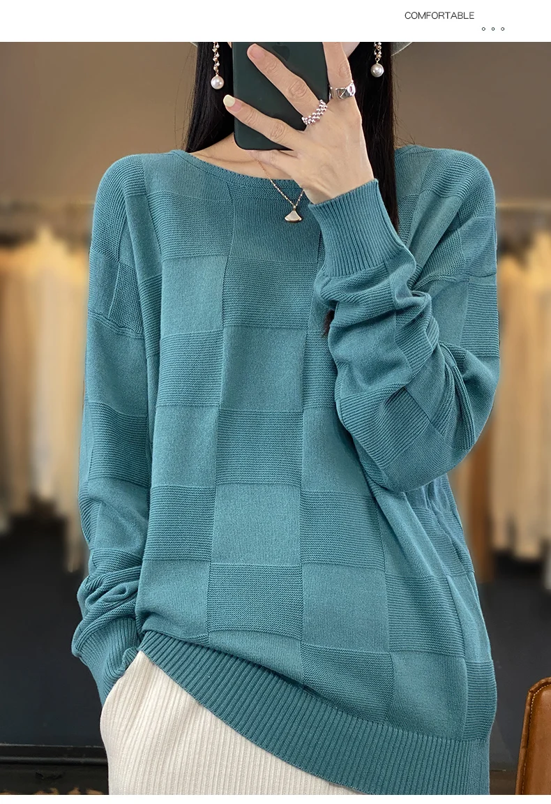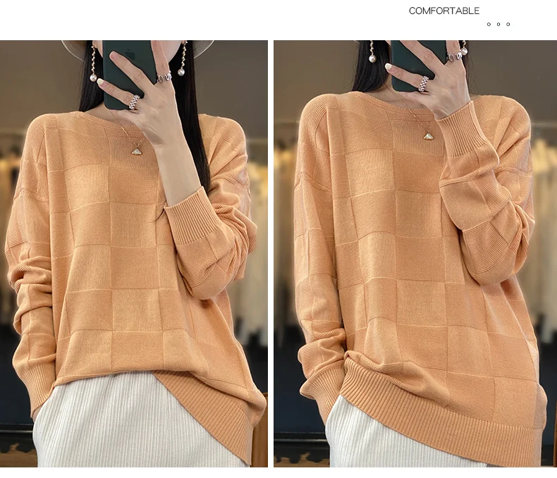 2 recensioni per Autunno Inverno Nuove Donne 100% Cotone Morbido Maglione Colletto Rotondo Modello Quadrato Pullover Allentato Moda Maglieria Casual Base Top