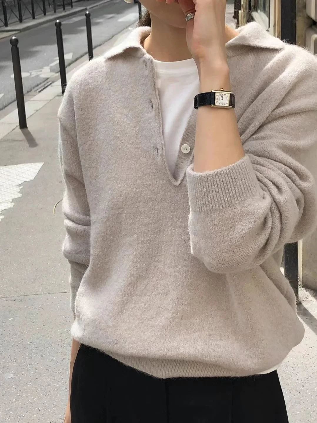 Autunno Inverno Nuovo Maglione delle Donne 100% Lana Merino Lavorato A Maglia Colletto POLO Pullover Casual Camicia A Maniche Lunghe Abbigliamento Donna Magliette E Camicette