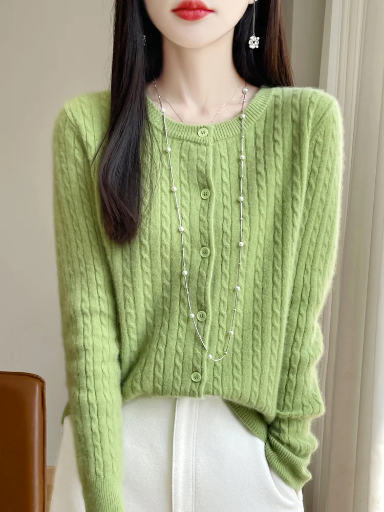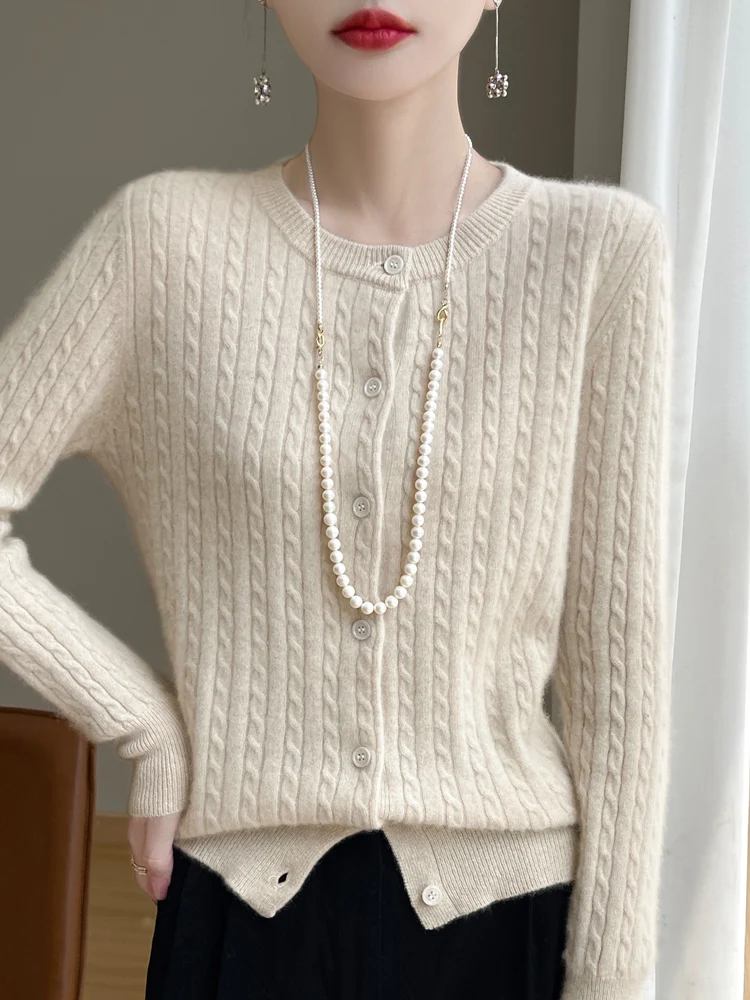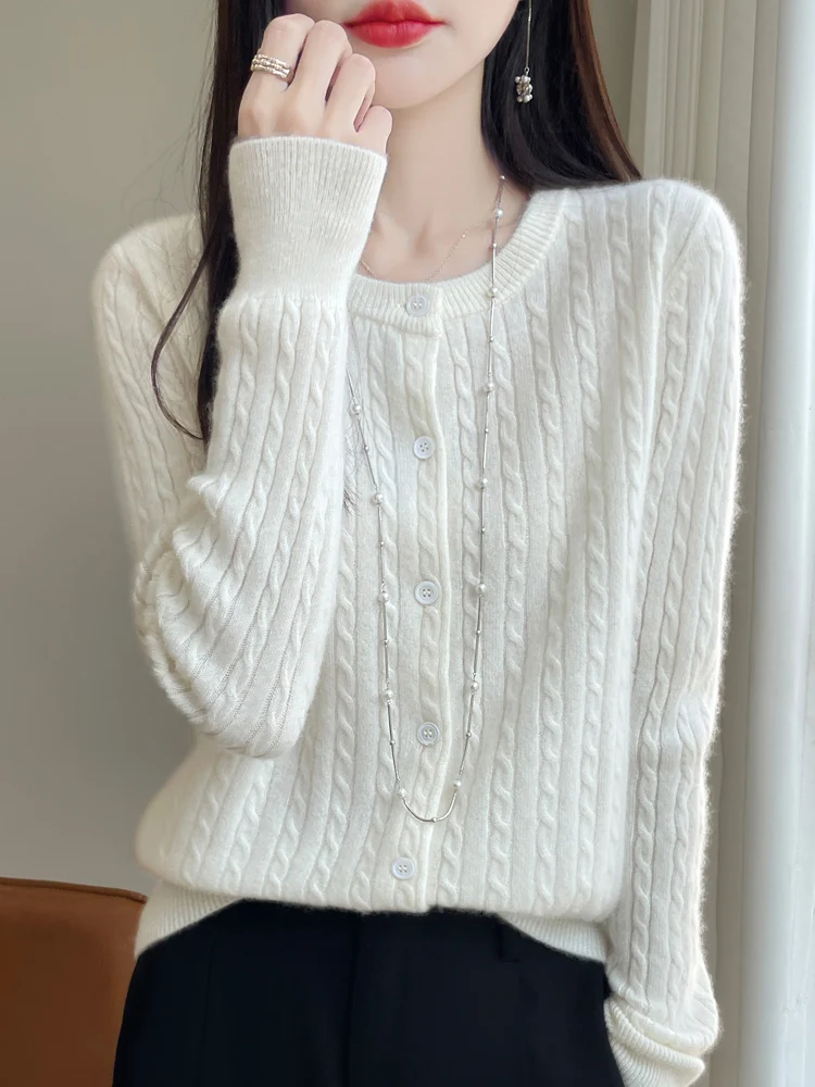 Autunno Inverno O-Collo Donna 100% maglione di lana merino Nuovo cardigan lavorato a maglia a trecce casual Top donna maglione di cashmere