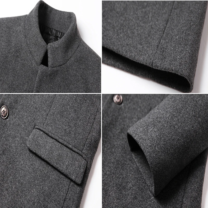 Autunno Inverno Uomo Giacche di lana Giacca a vento lunga da uomo Trench Uomo Tinta unita Colletto rovesciato Giacche da lavoro Abbigliamento