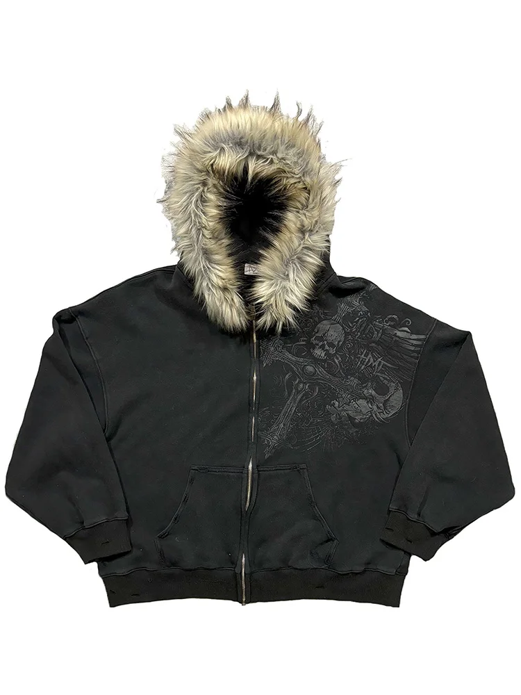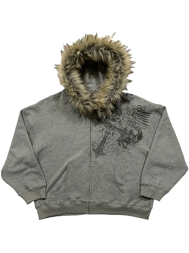 Autunno/Inverno Y2k Donne Estetica Harajuku Collo in Pelliccia Sintetica Felpe con Cappuccio Vestiti Grafica Hip Hop Punk Gotico Zip Up Felpe 2025 nuovo