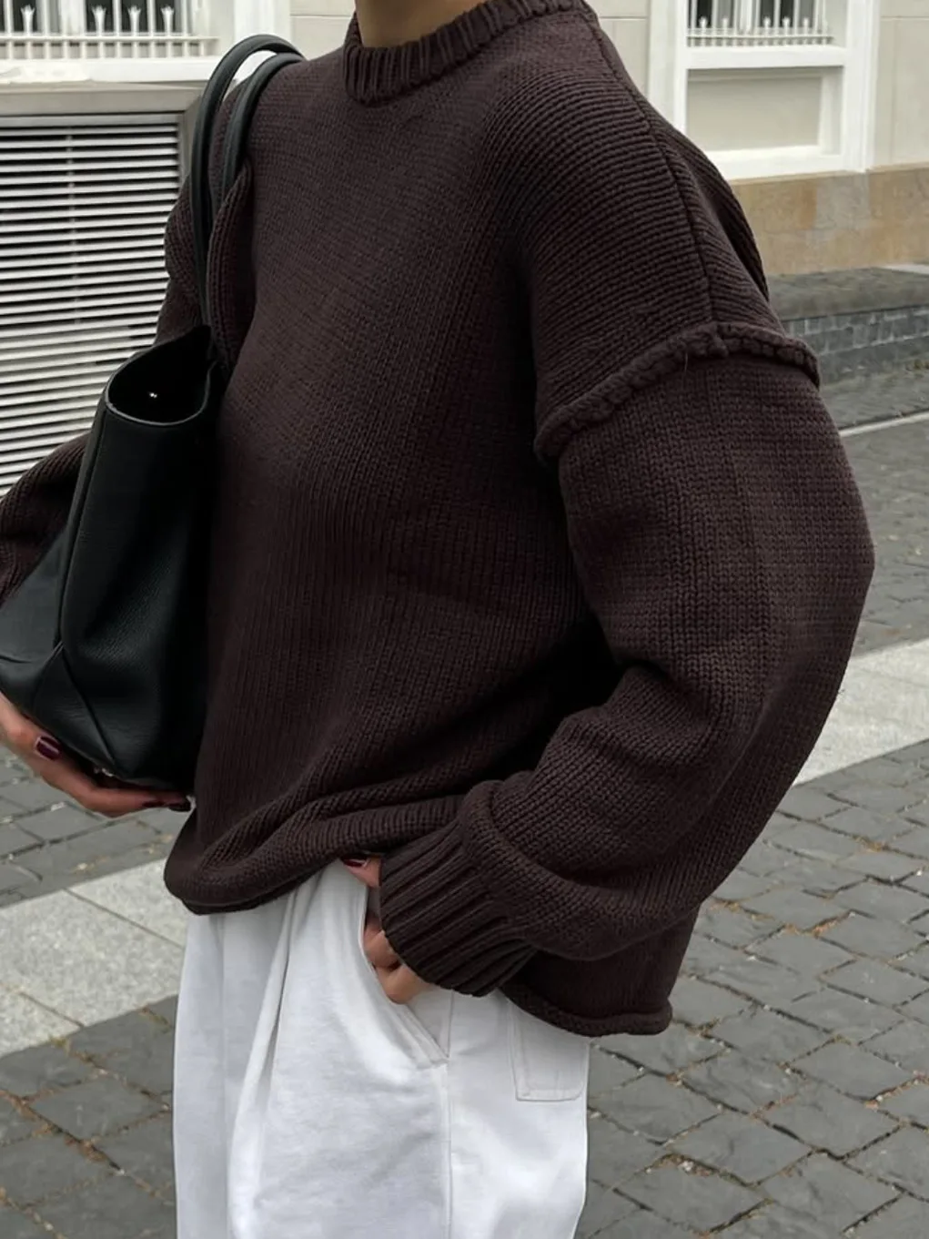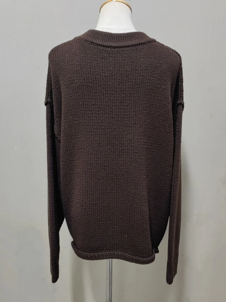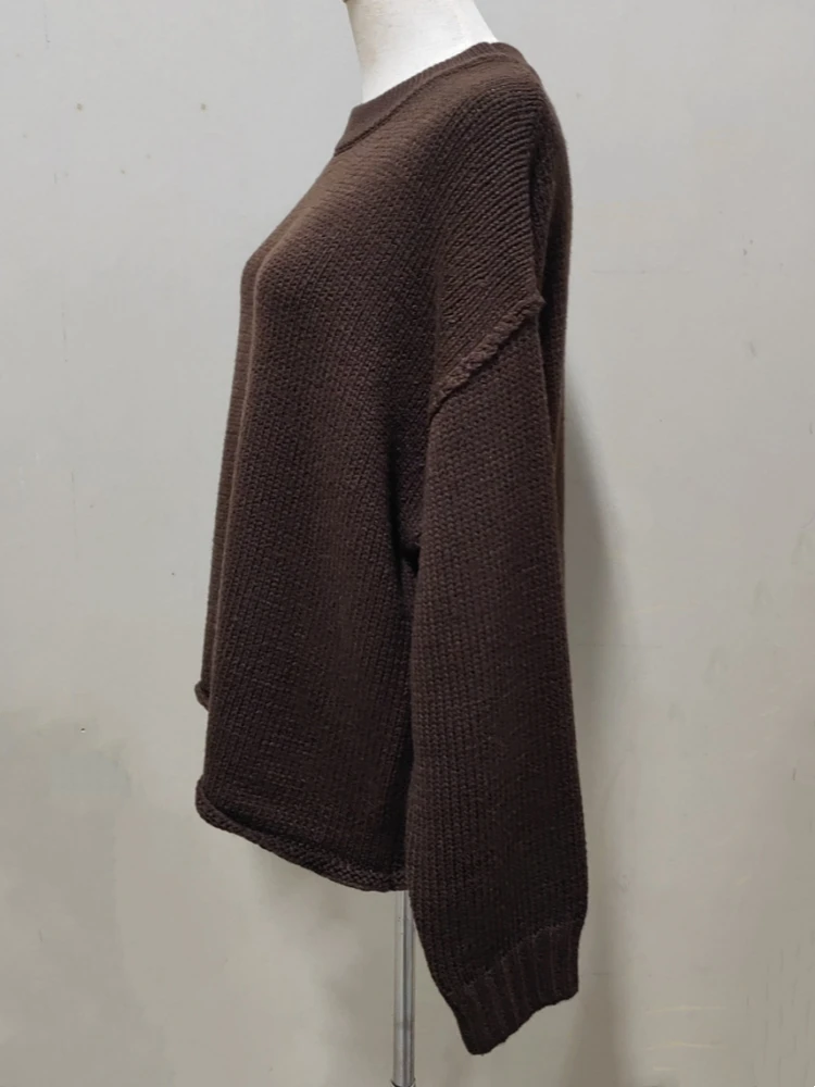 Autunno Moda Marrone scuro Pullover lavorato a maglia allentato Donna Casual O-Collo Manica lunga Maglione bianco spesso 2025 Maglieria invernale da donna