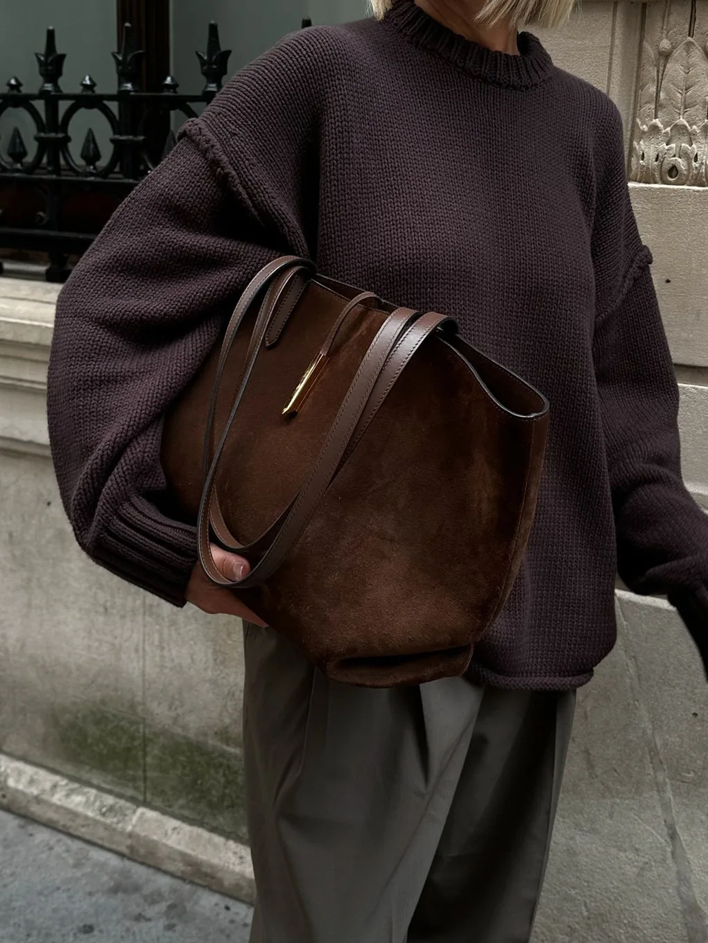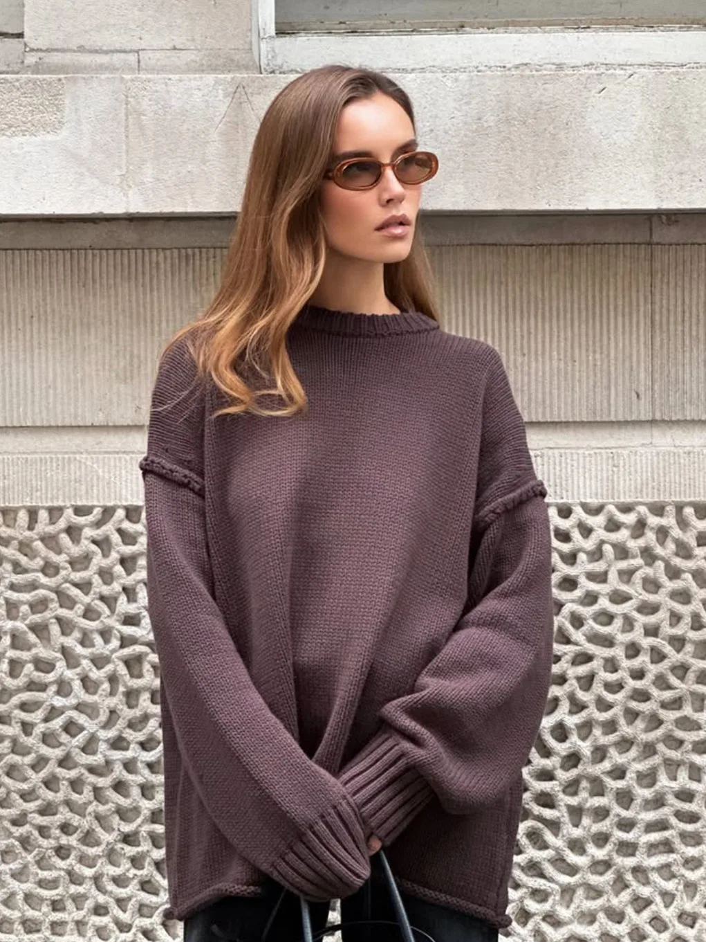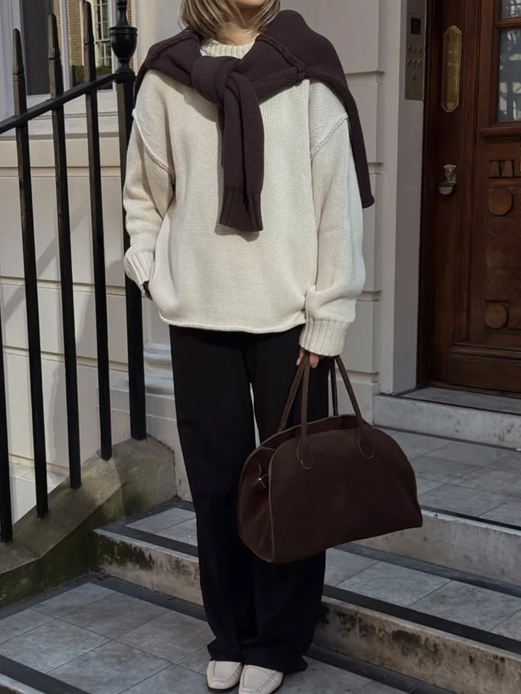 Autunno Moda Marrone scuro Pullover lavorato a maglia allentato Donna Casual O-Collo Manica lunga Maglione bianco spesso 2025 Maglieria invernale da donna