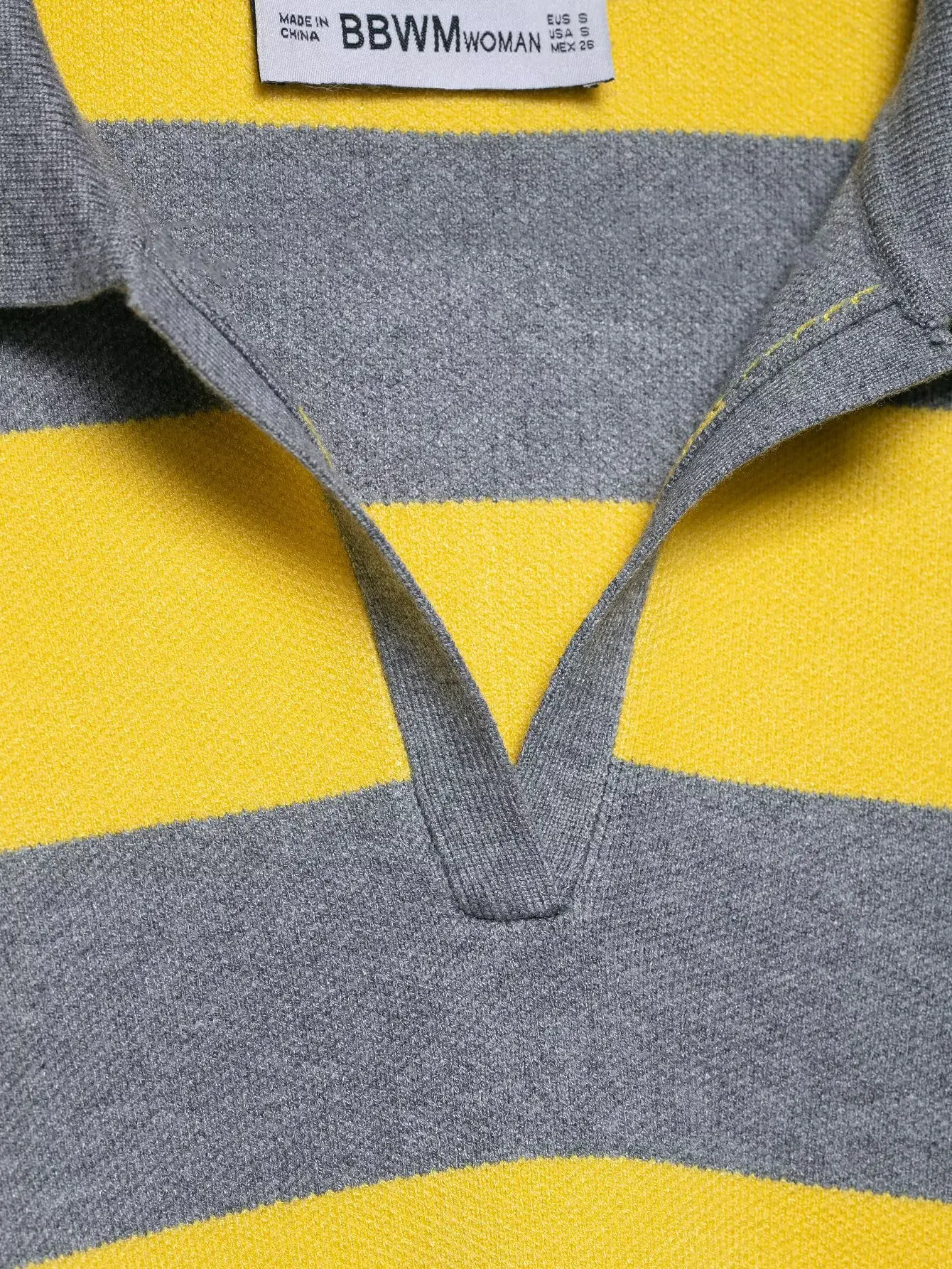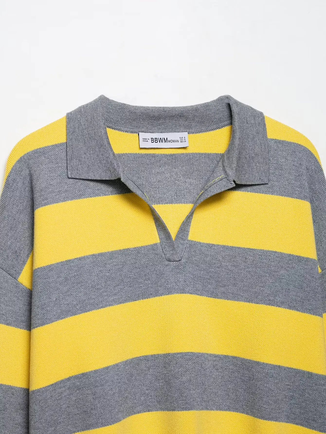 Autunno nuove donne abbigliamento alla moda design alla moda maglione con colletto POLO a righe casual manica lunga maglieria elegante femminile