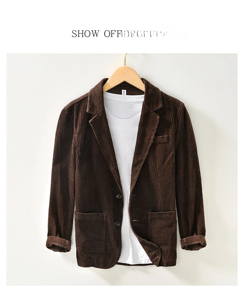 Autunno Nuovo Casual 100% Cotone Velluto a Coste Safari Abiti per Gli Uomini Abbigliamento Tinta Unita Blazer Uomini Giubbotti Oversize BL1009