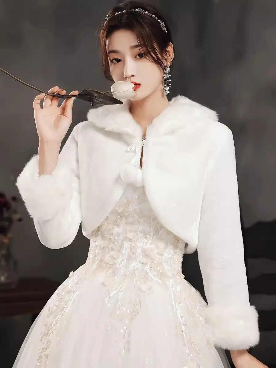 Avvolgimento da sposa bianco Scialli da sposa Stola Mantelle in pelliccia sintetica Coprispalle per feste Mantello invernale Accessori Elegante regina per le donne