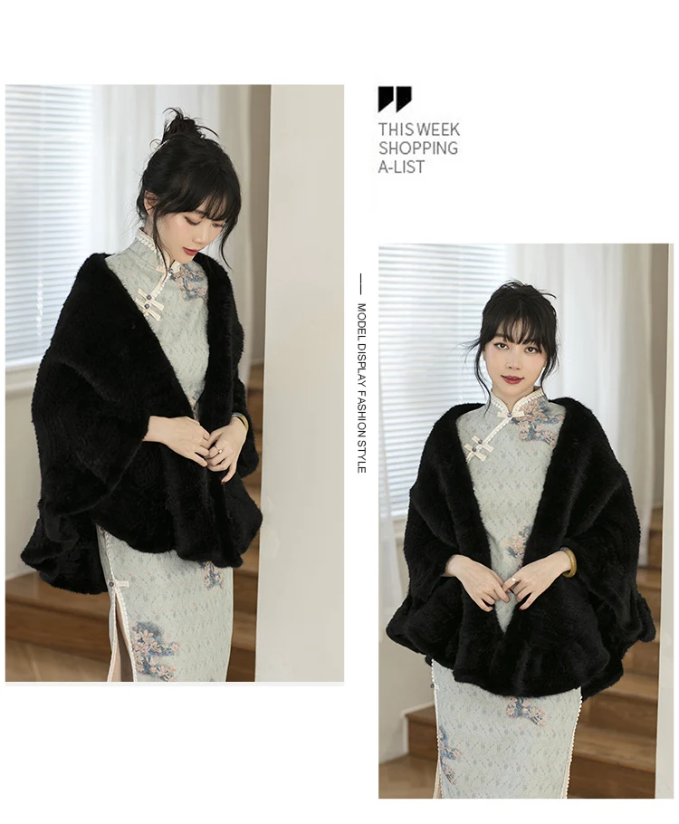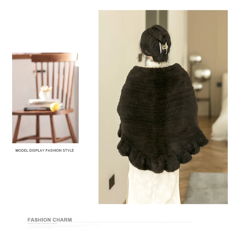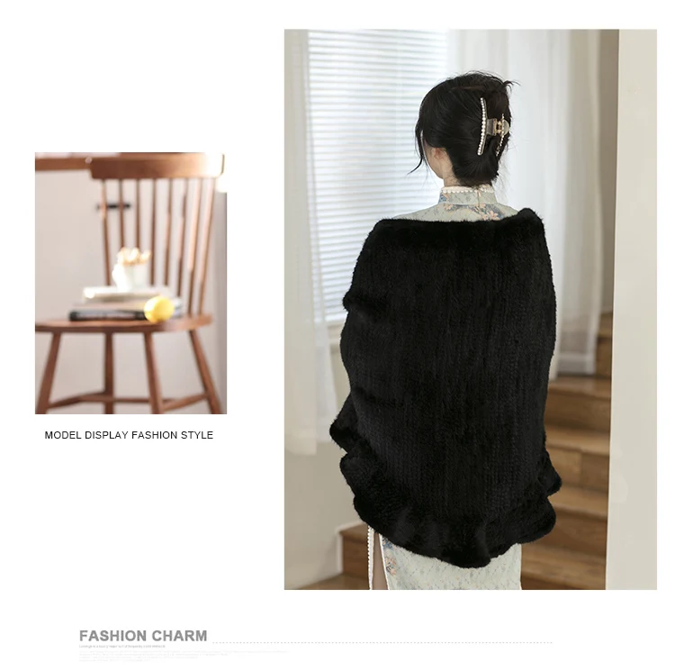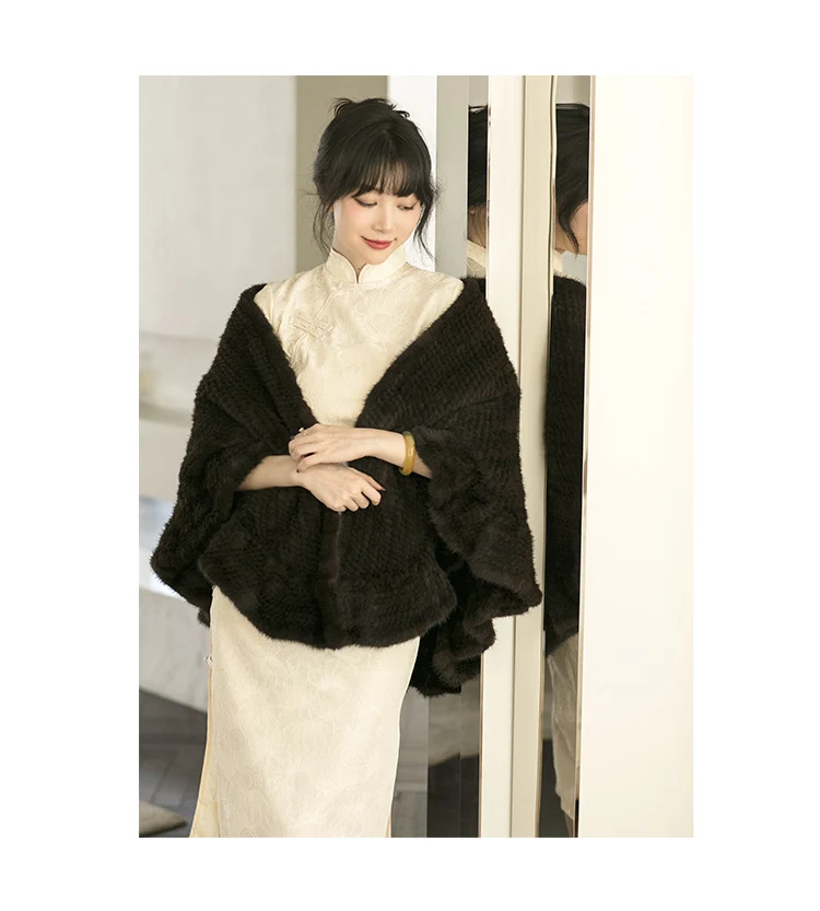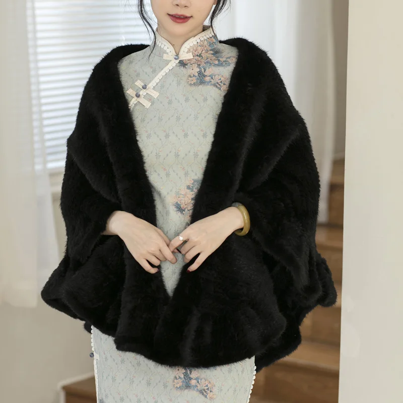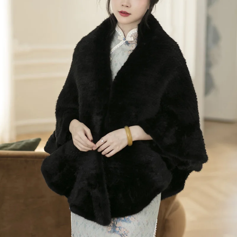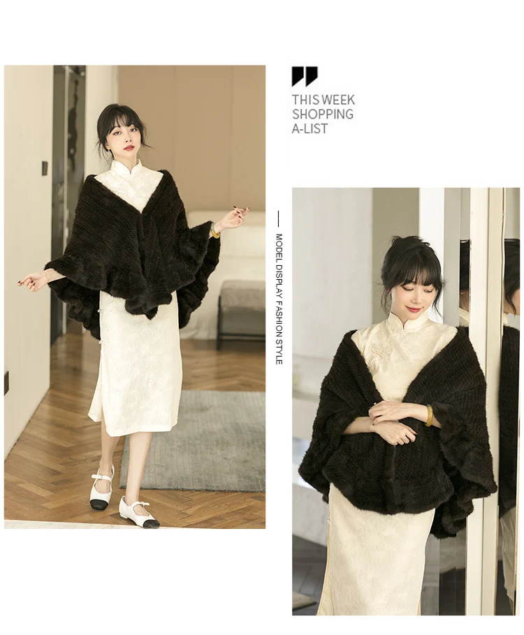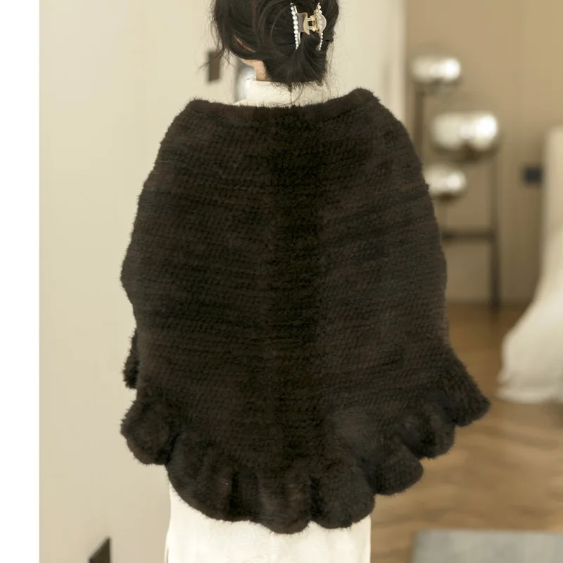 Besfilin Double-Sided Reale Pelliccia di Visone Mantello da Donna Mezza Rotonda Scialle da Viaggio Poncho Sciarpa Tessuta Moda Caldo Autunno Inverno