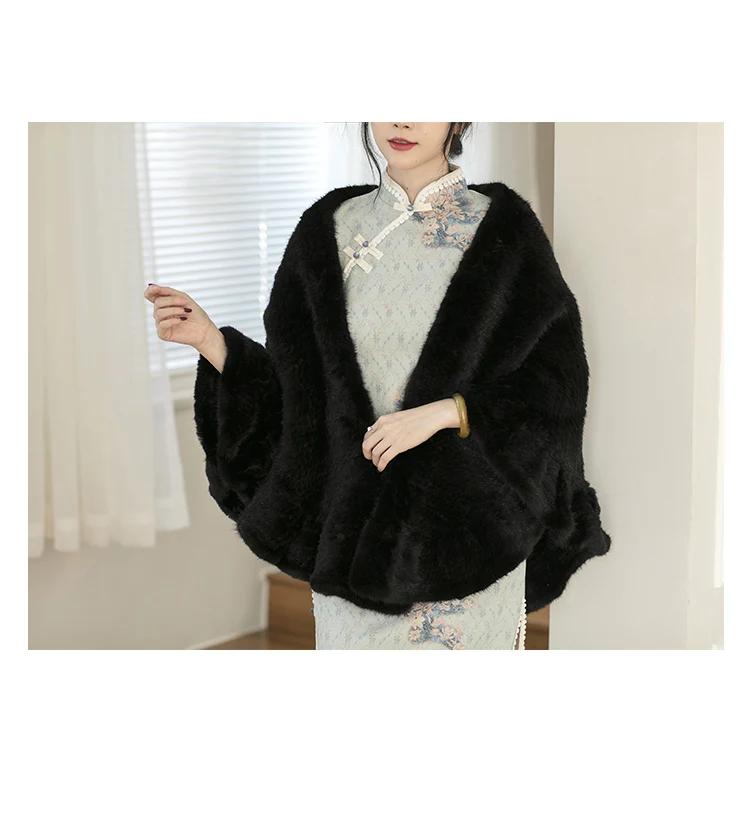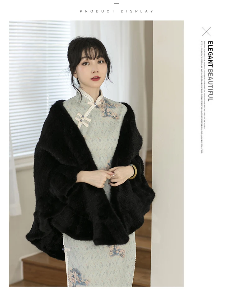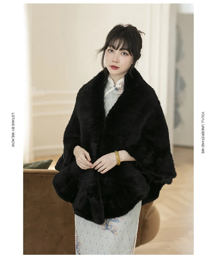Realizzato in vera pelliccia di visone, questo mantello offre un lussuoso calore e un tocco morbido e vellutato per un massimo comfort.