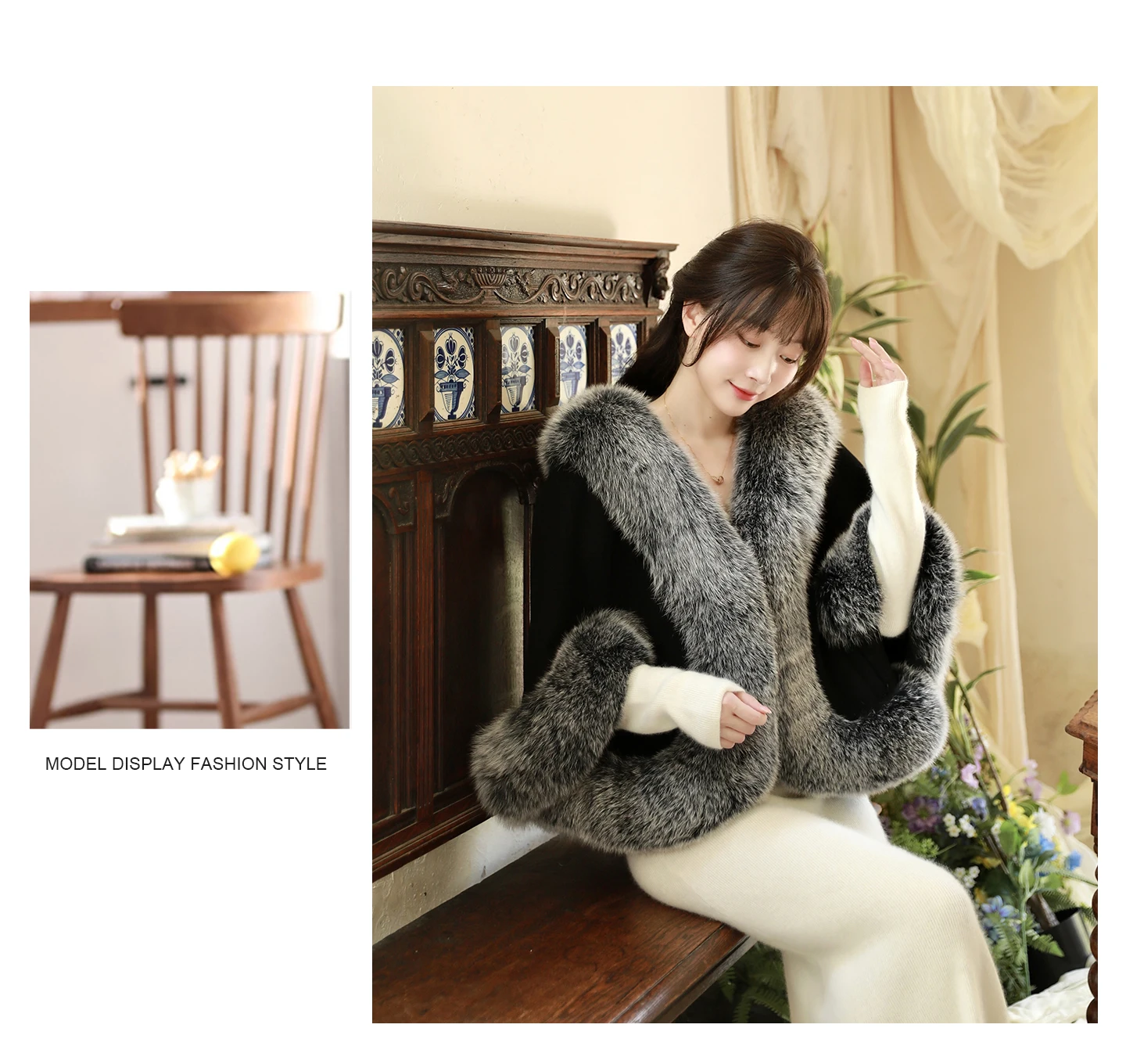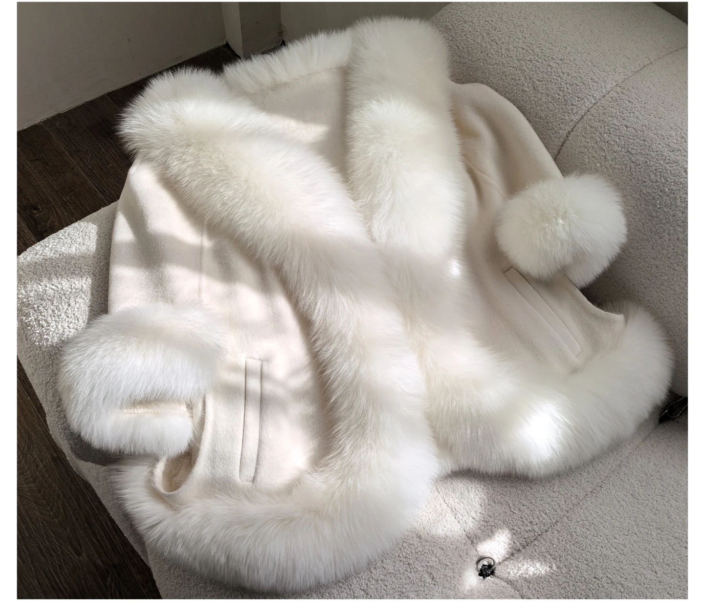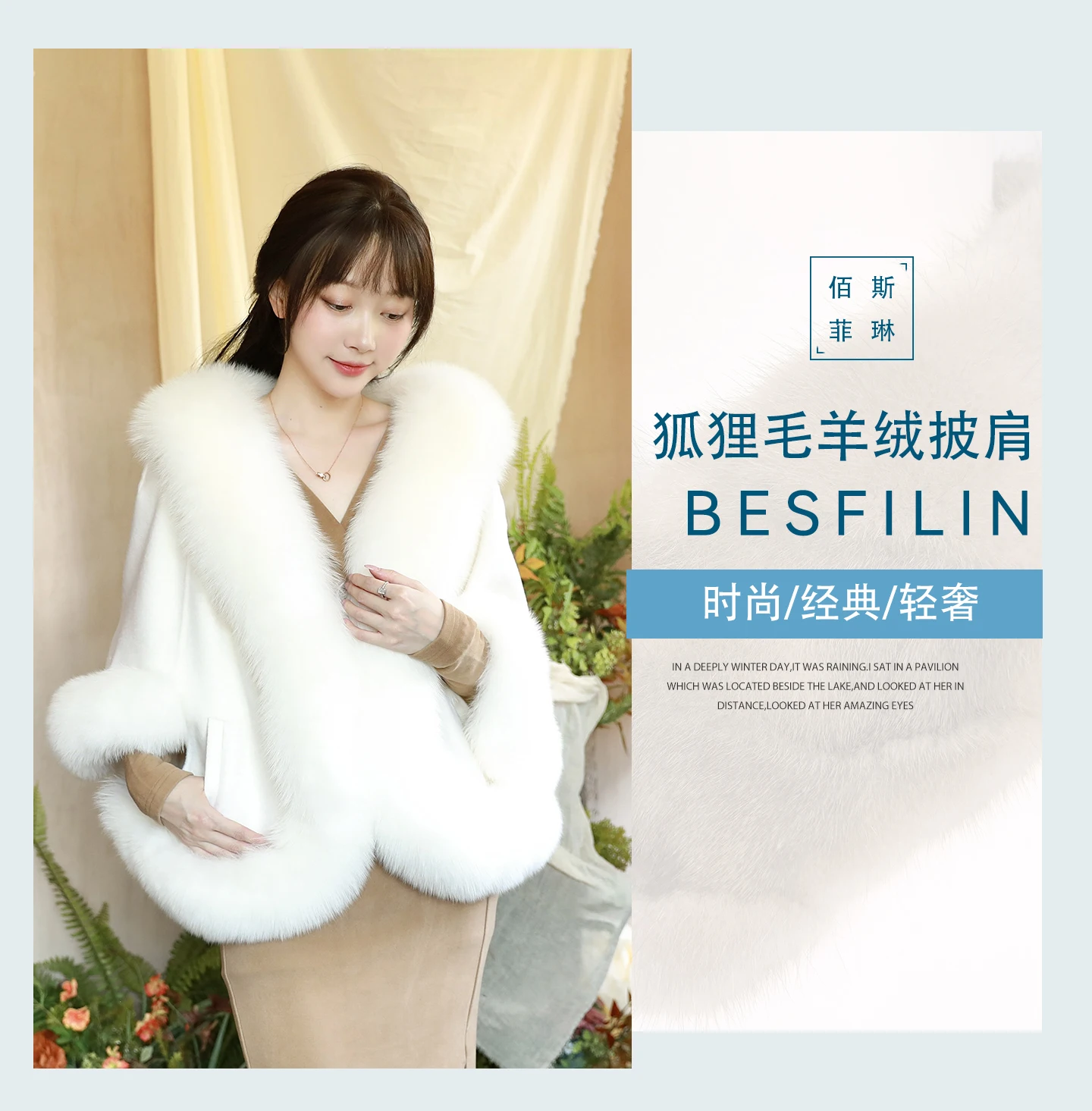 Besfilin Vera Pelliccia di Volpe Avvolgente Caldo Scialle da Donna in Lana Cashmere Capispalla per Viaggi per Feste Abito da Sposa Primavera Autunno Inverno