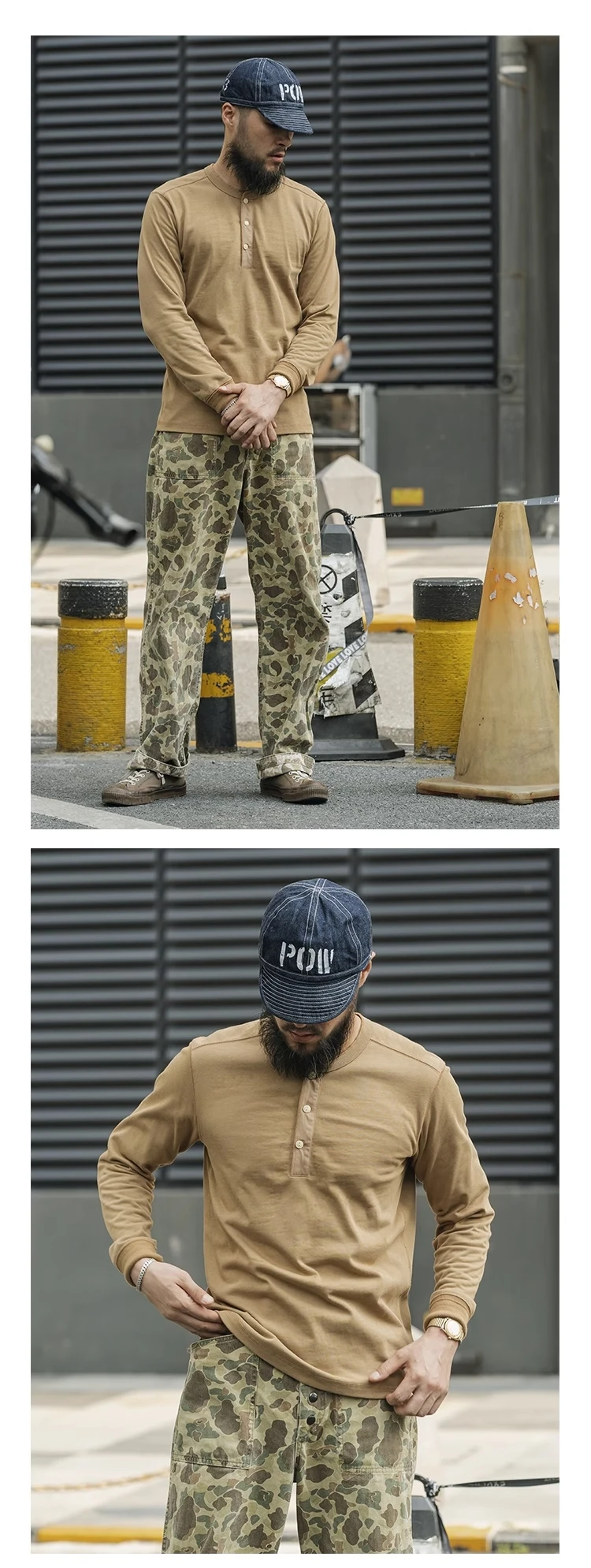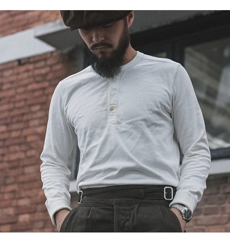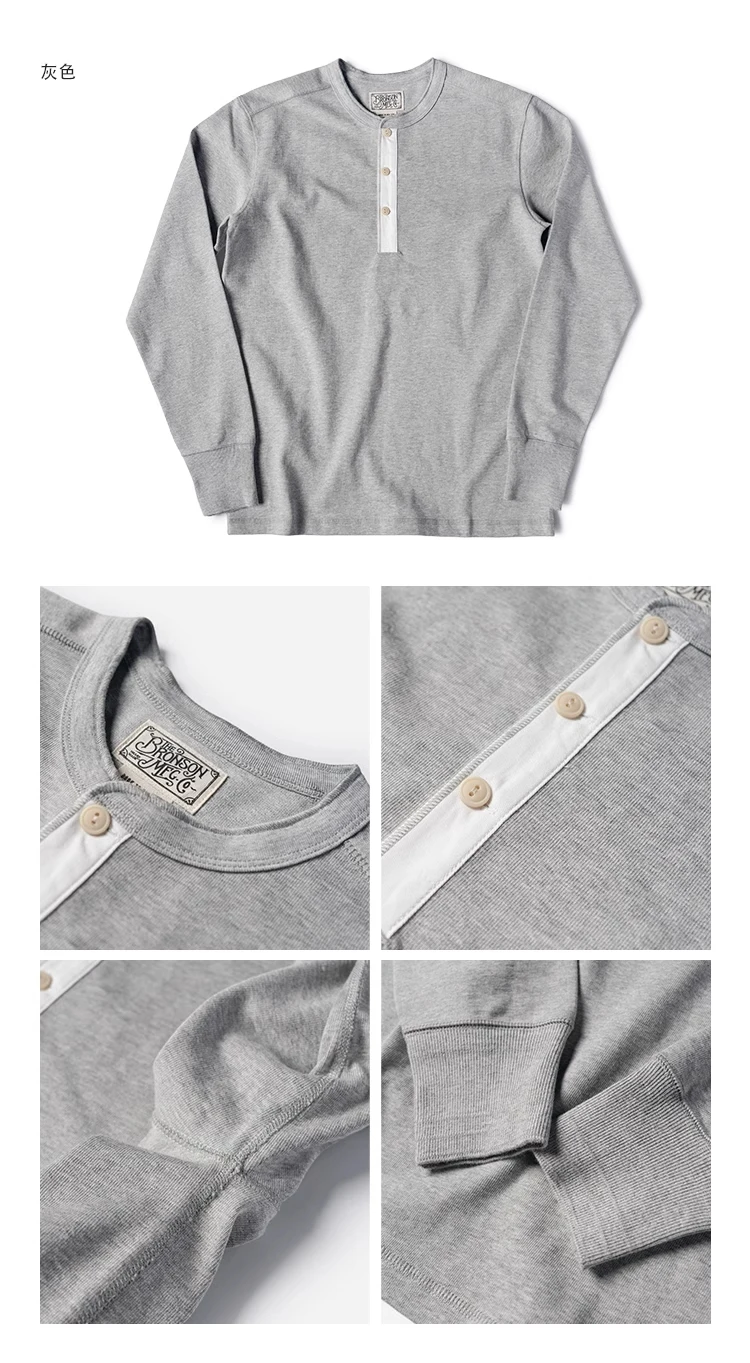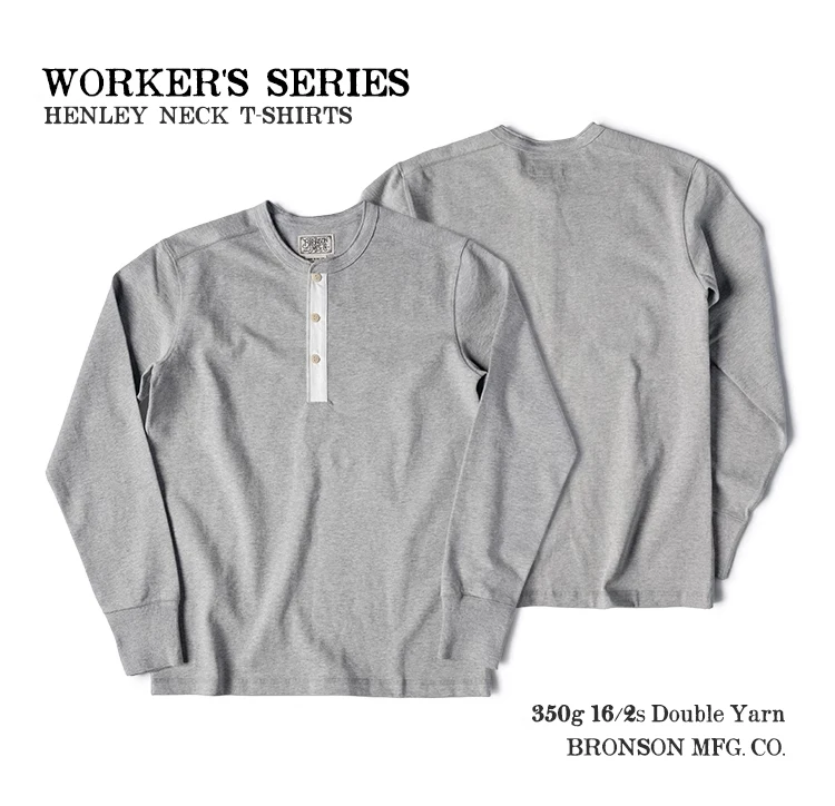 Bronson 350g Heavyweight L/S Henley Shirt T-shirt vintage con base semplice da uomo