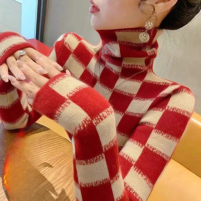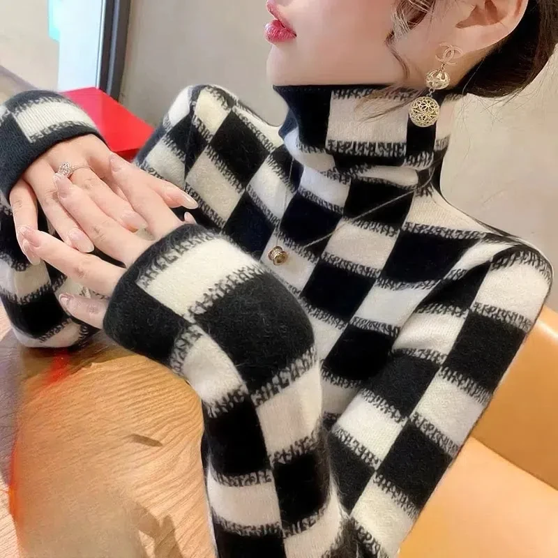 Camicia con fondo in stile occidentale a collo alto Donna Autunno Inverno Nuovo modello Manica lunga Slim All-match Top caldi Abbigliamento donna