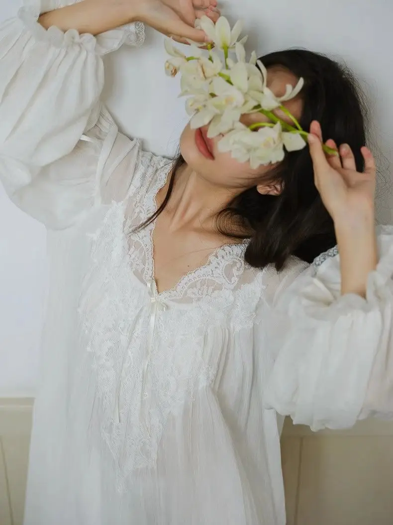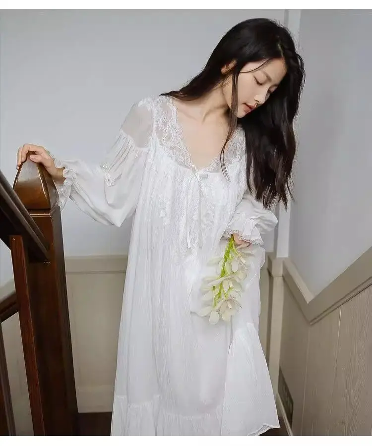 Recensisci per primo “Camicia da notte bianca a maniche lunghe da donna in primavera autunno Abito da donna con gonna lunga in pizzo a maniche lunghe stile principessa bellissimo pigiama” Annulla risposta