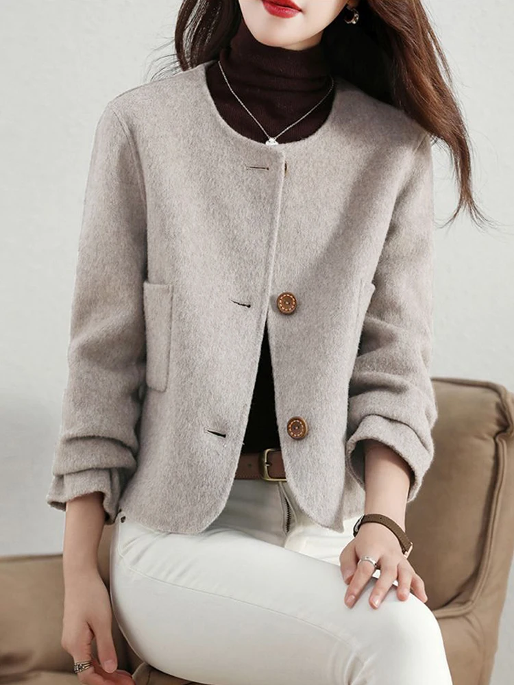 Cappotti di lana corti solidi alla moda per donna Autunno Inverno Abbigliamento donna caldo Abbottonatura Cappotto femminile Nuovo in capispalla
