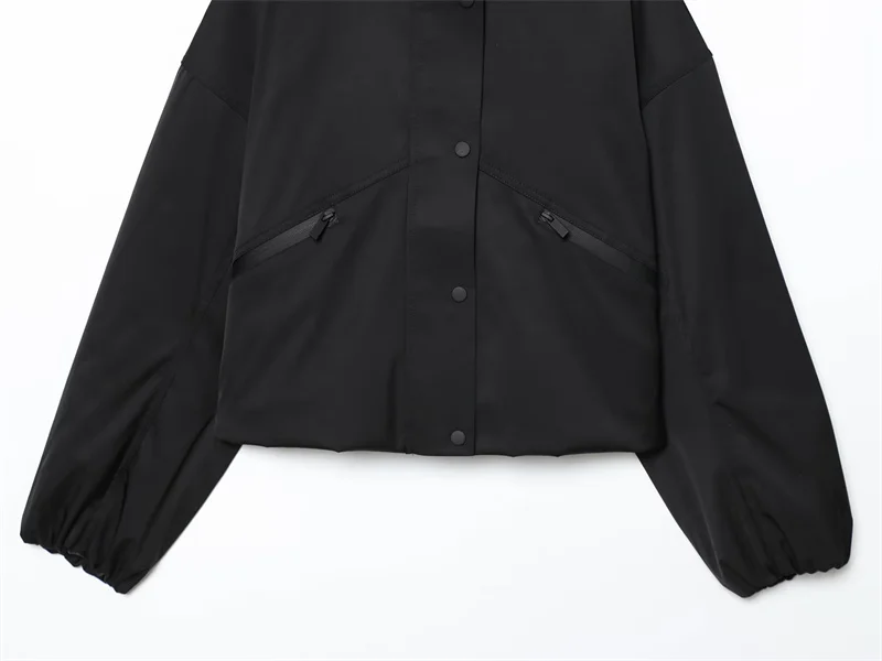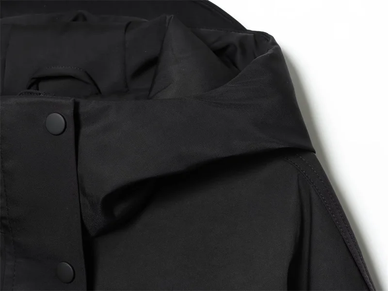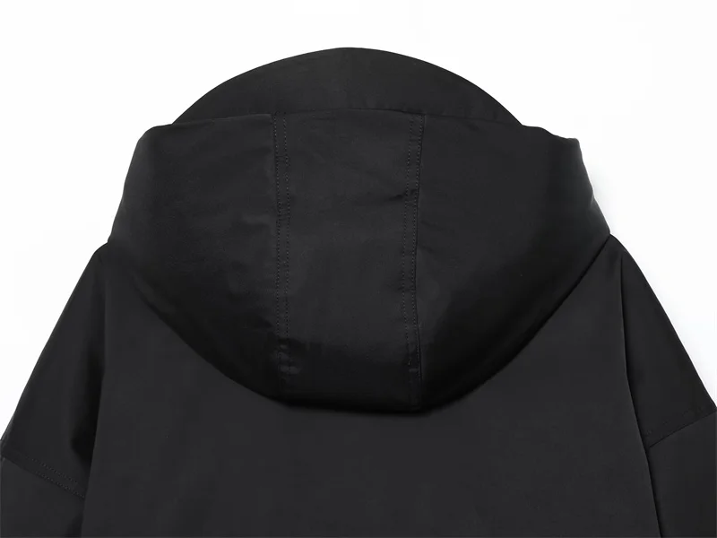 Cappotto da donna 2025 Autunno Nuovo stile Nero Manica lunga con cappuccio Giacca semplice antivento impermeabile Moda casual Versatile