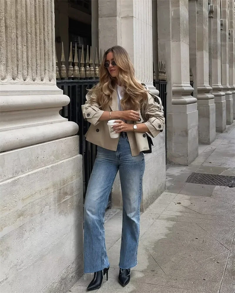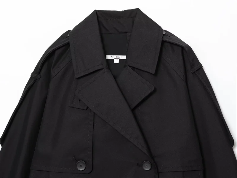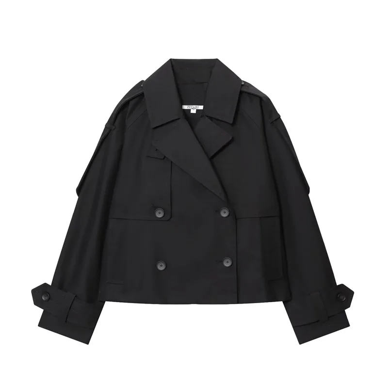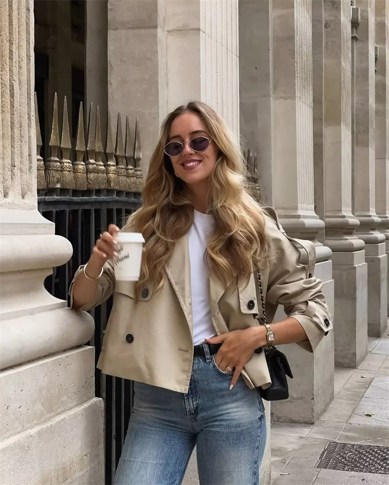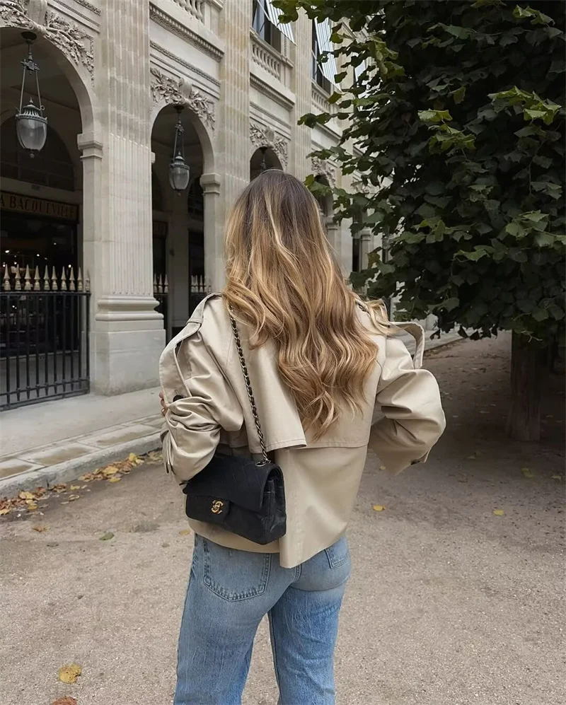 Cappotto da donna 2025 Autunno nuovo stile tinta unita manica lunga stile britannico decorativo corto giacca a vento impermeabile cappotto casual