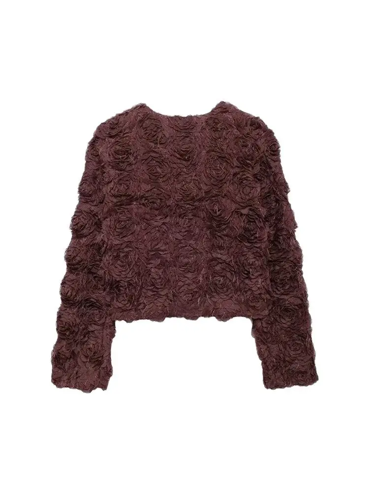 Cappotto da donna corto strutturato a forma di fiore moda manica lunga bottone a pressione capispalla femminile top chic