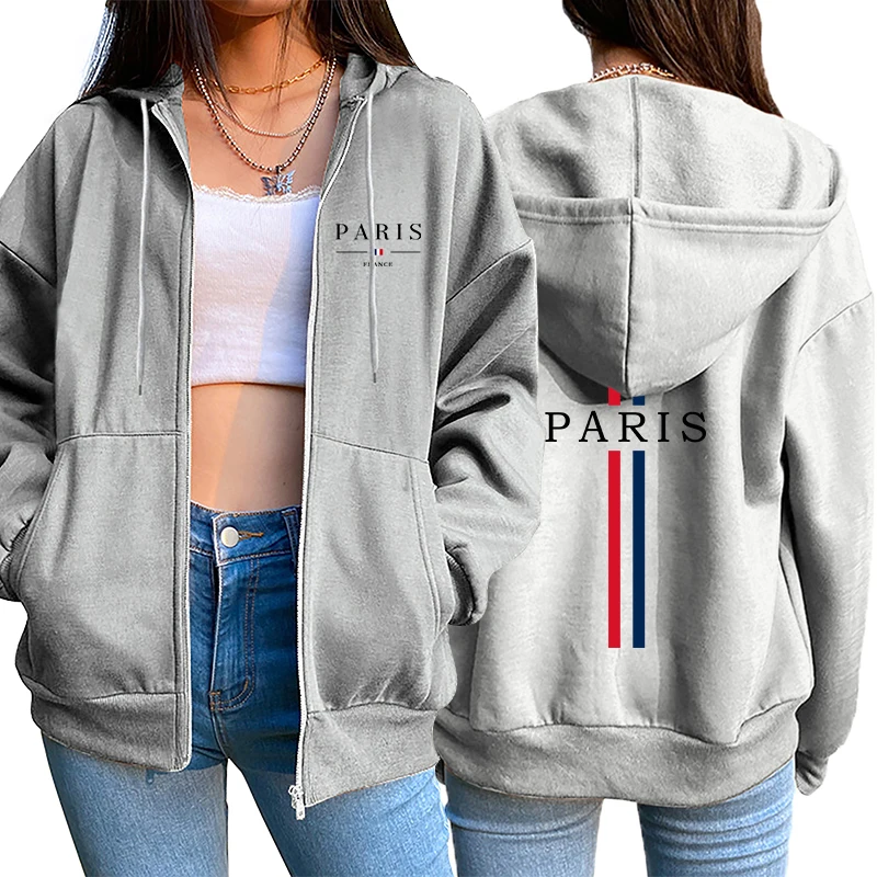 Cappotto da giacca da donna con stampa di lettere di Parigi Vendite calde Moda Top con cerniera allentata Felpa sportiva con cappuccio Abbigliamento donna casual Stile europeo