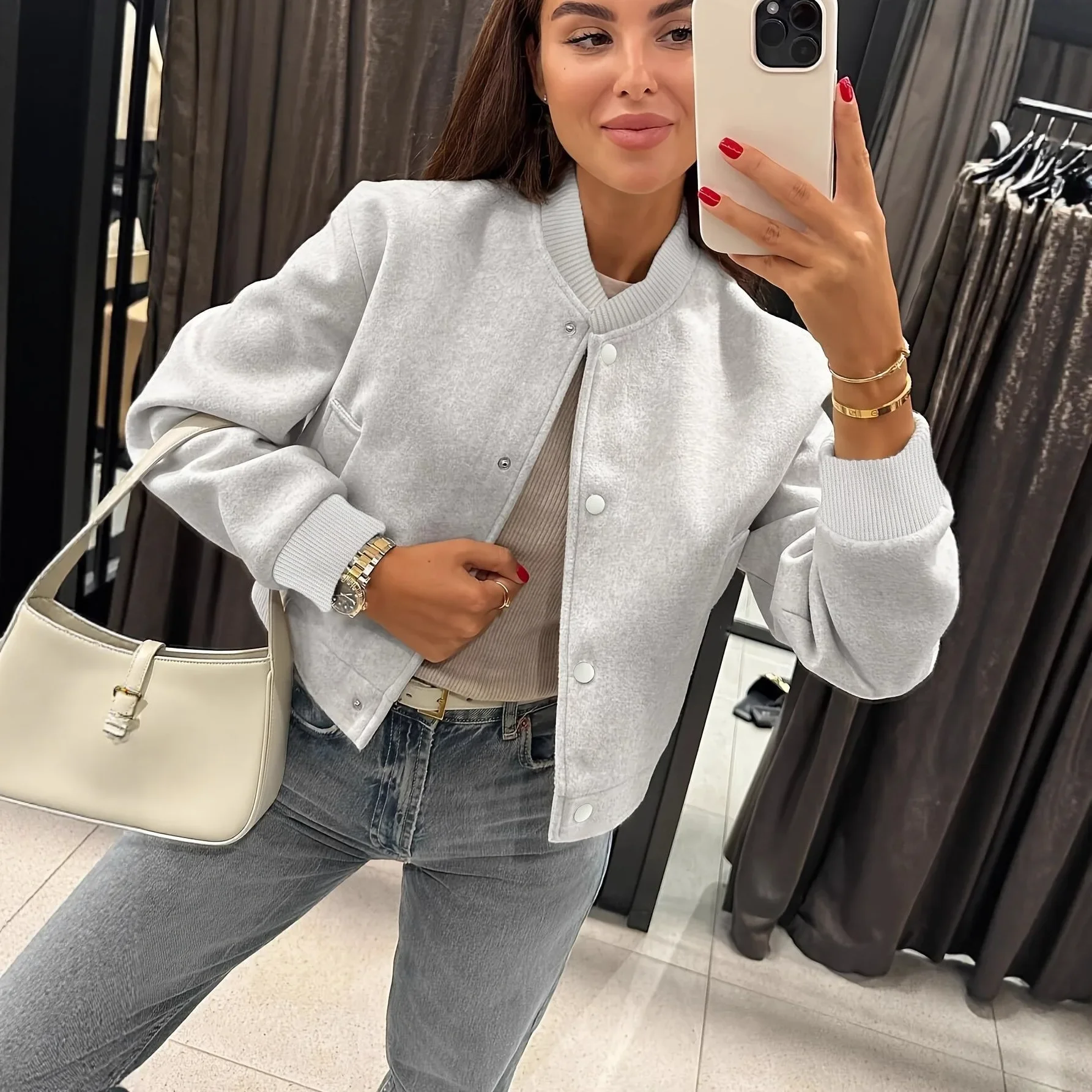 Cappotto da pilota morbido a maniche lunghe casual da donna Autunno Inverno Capispalla ampio con colletto alla coreana in fibra di poliestere ispessita