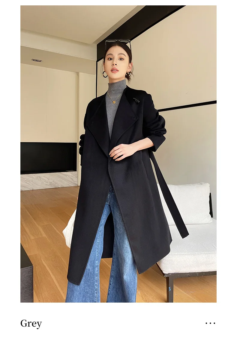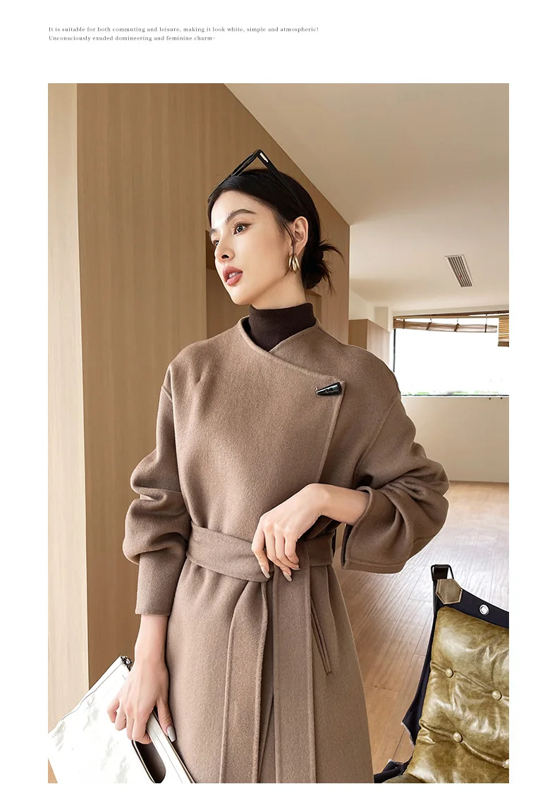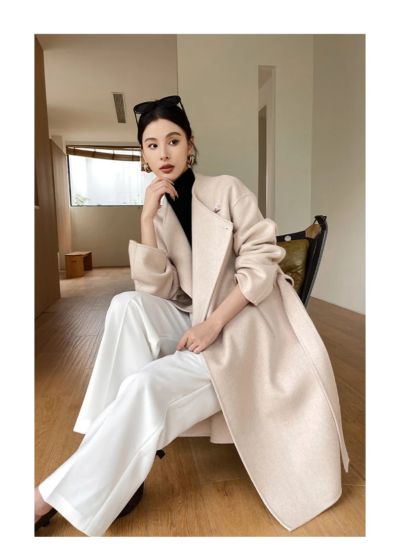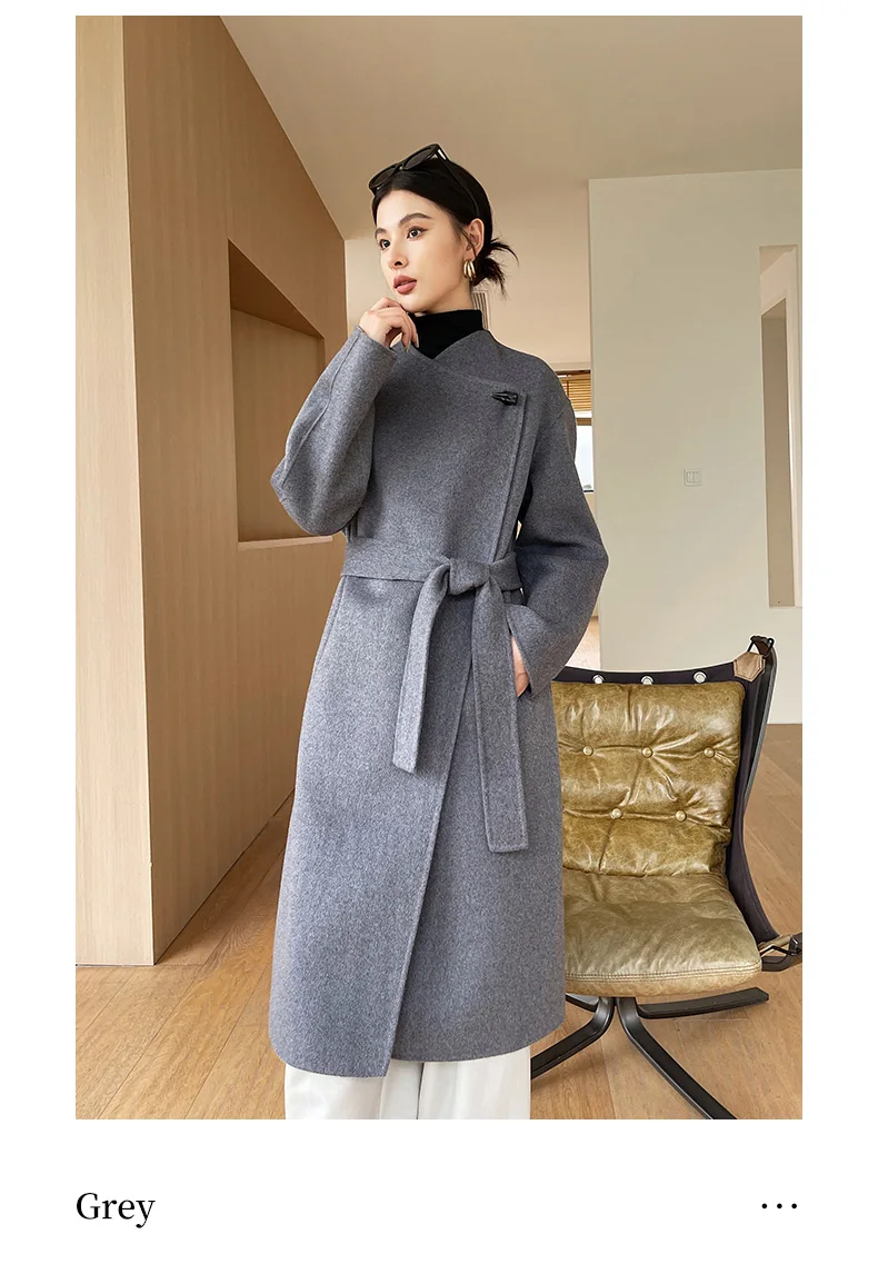 Cappotto di lana con colletto doppio scopo Bottone in corno Cappotto di lana 100% da donna Doppi strati Autunno Inverno Giacca lunga Trench spesso # 23