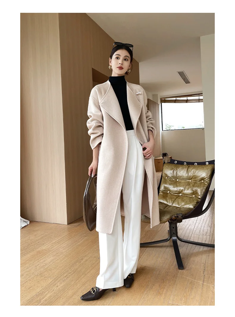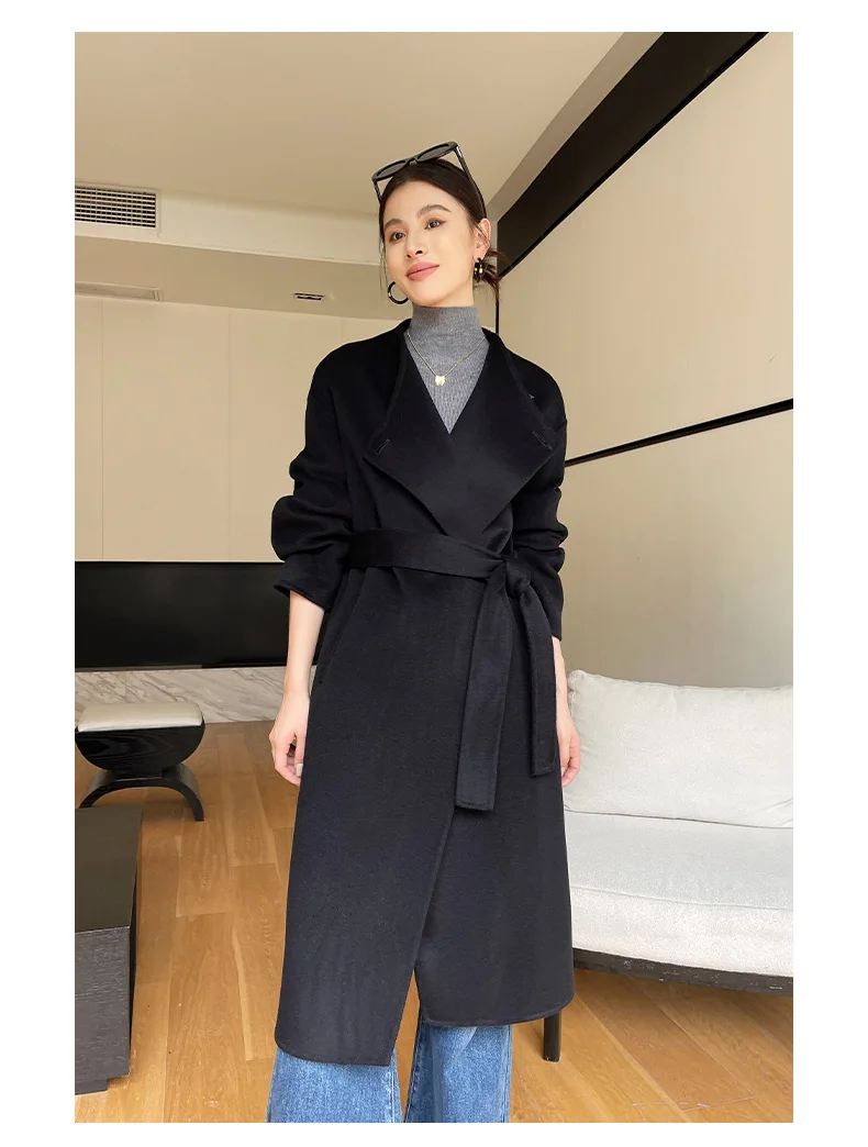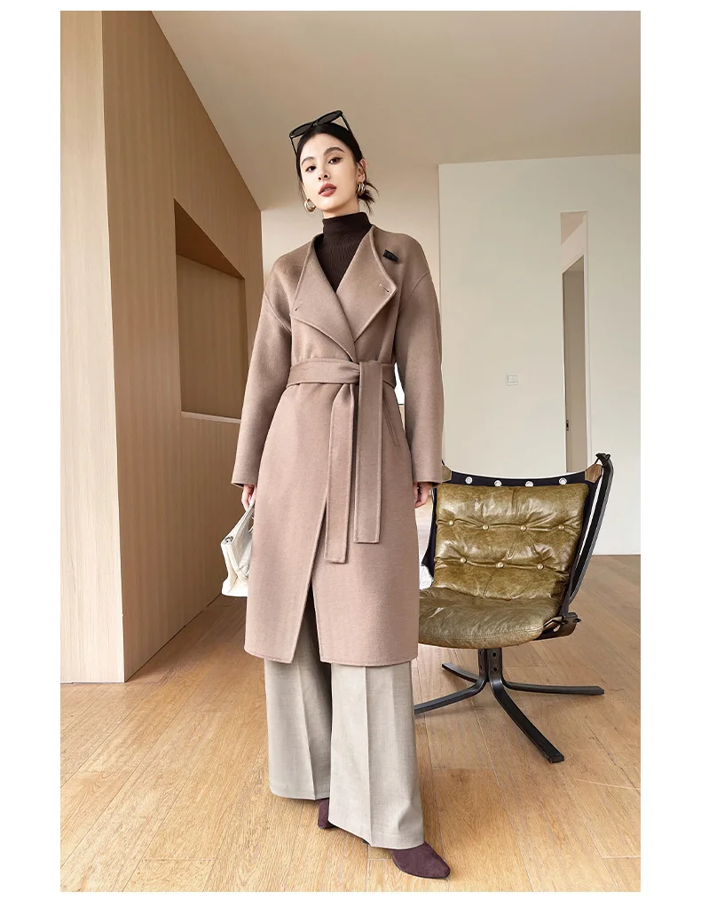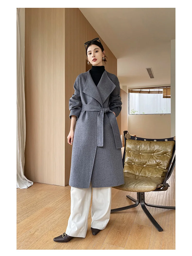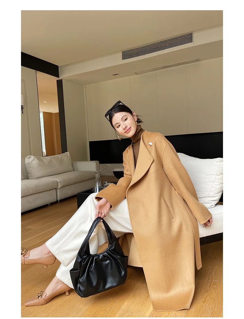 Cappotto di lana con colletto doppio scopo Bottone in corno Cappotto di lana 100% da donna Doppi strati Autunno Inverno Giacca lunga Trench spesso # 23