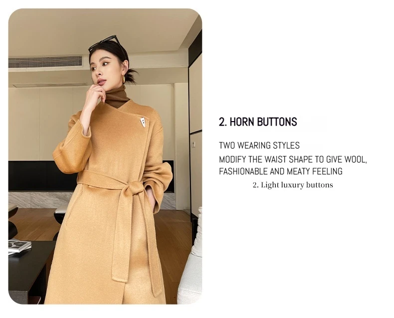 Recensisci per primo “Cappotto di lana con colletto doppio scopo Bottone in corno Cappotto di lana 100% da donna Doppi strati Autunno Inverno Giacca lunga Trench spesso # 23”