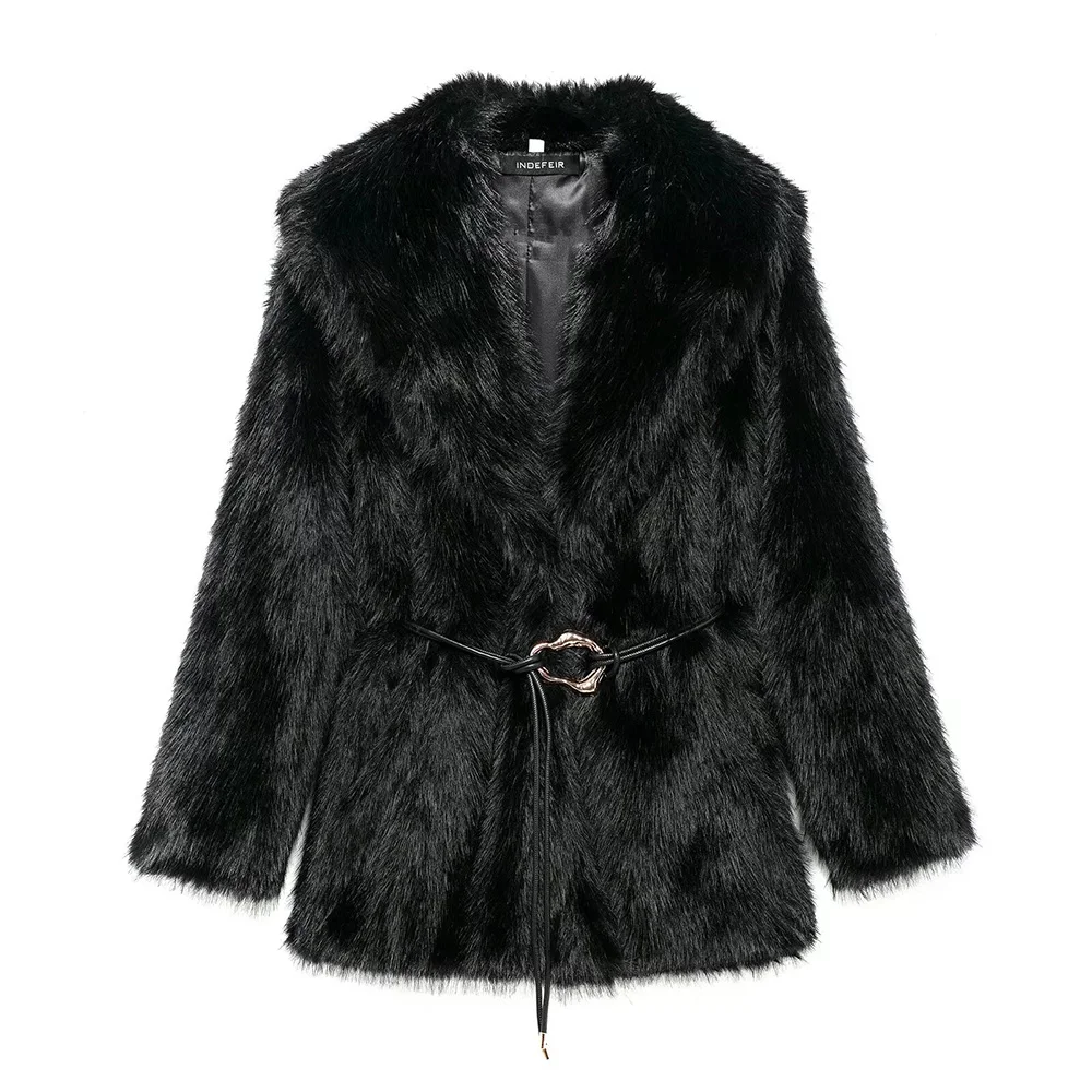 Cappotto medio lungo da donna con colletto decorativo con cintura tinta unita Cappotto ampio a maniche lunghe autunno/inverno