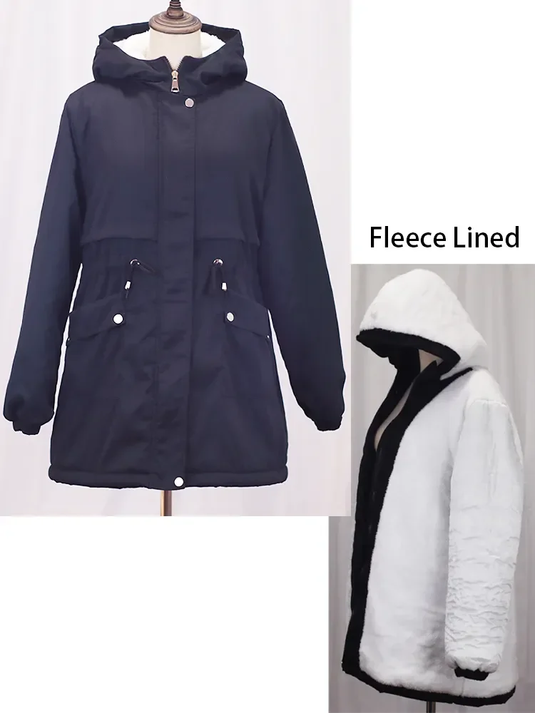 Recensisci per primo “Cappotto Parka foderato in pile morbido ispessito da donna nuovo inverno 3XL di alta qualità Giacca leggera con cappuccio con tasche”
