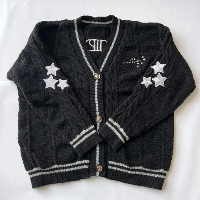 Cardigan invernale in cotone con vestibilità ampia ricamato a stella calda da donna maglione cardigan lavorato a maglia kaki moda autunno donna Y2k