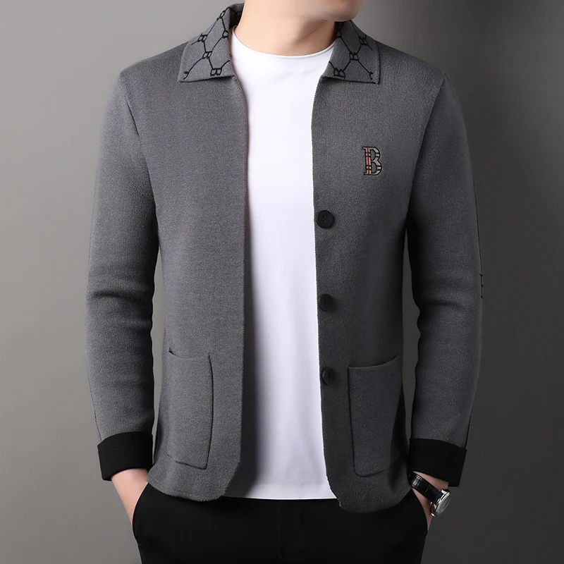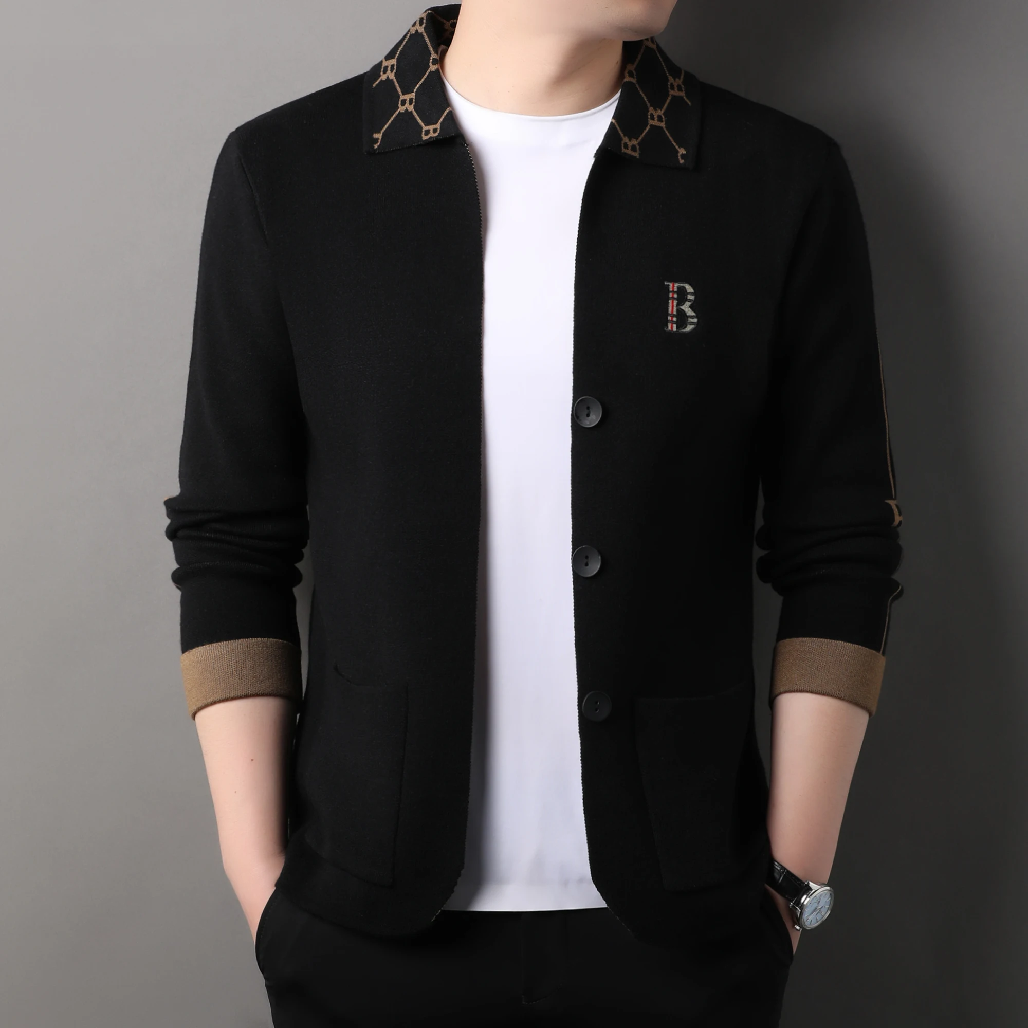 Cardigan lavorato a maglia da uomo di qualità di lusso Tasca con lettera ricamata Cappotto a maniche lunghe con risvolto invernale Versatile tendenza della moda Top da uomo