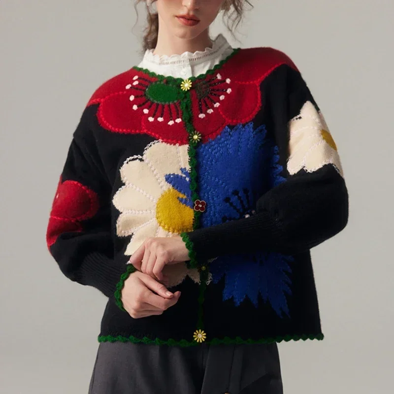 Cardigan moda donna di alta qualità con ricamo floreale vintage lavorato a maglia Tendenze moda autunno/inverno Nuovo in maglione chic