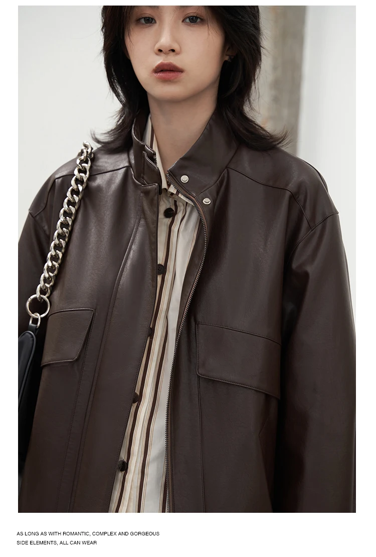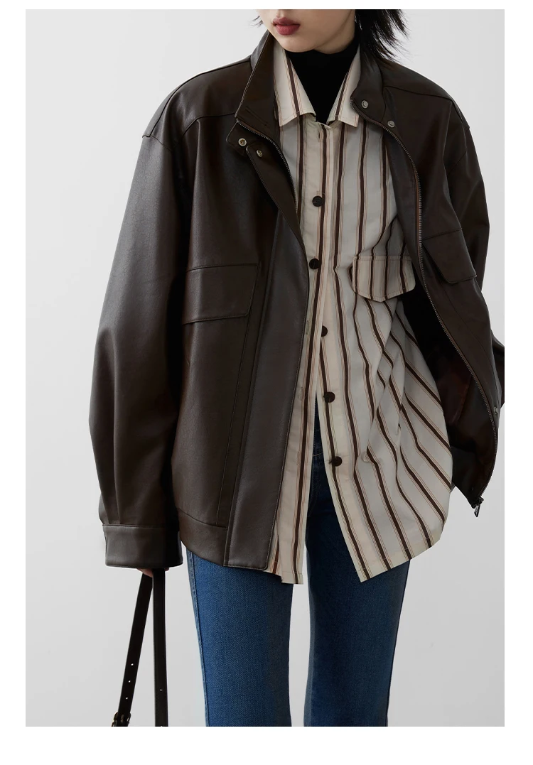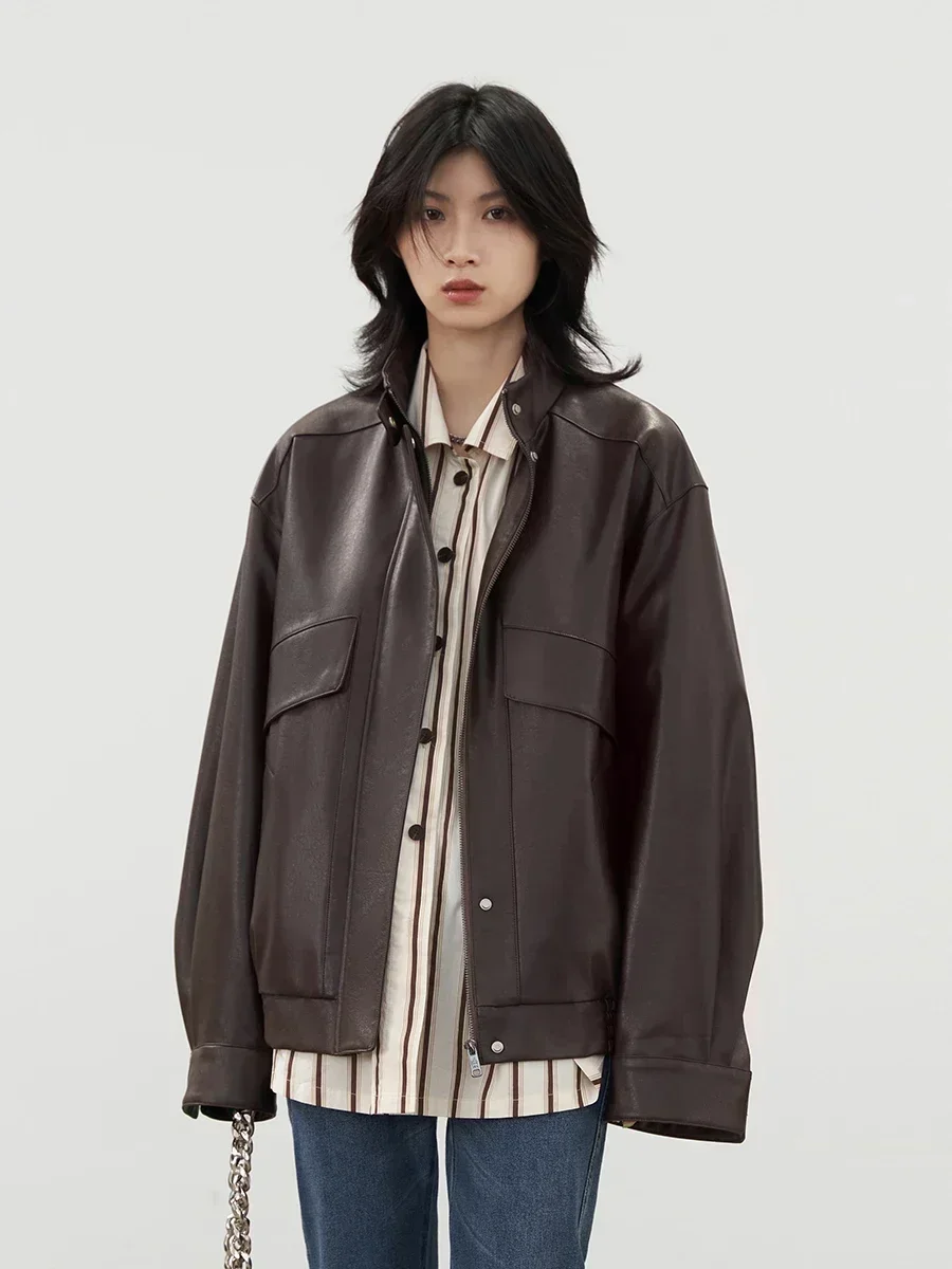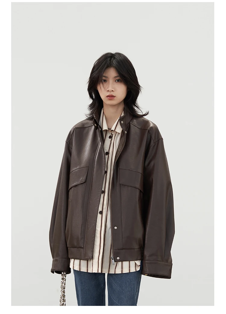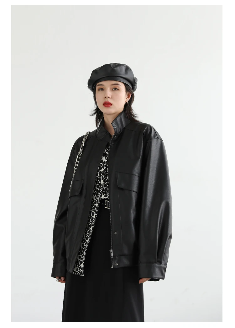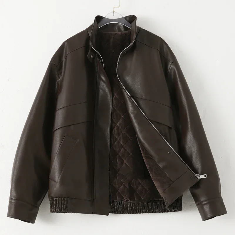 CHIC VEN Giacca da donna a maniche lunghe Solido colletto alla coreana spesso PU Cappotto in ecopelle Top femminile Cappotto trapuntato Autunno Inverno 2024
