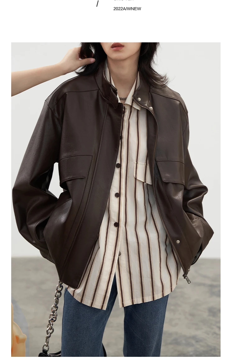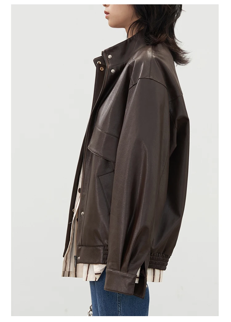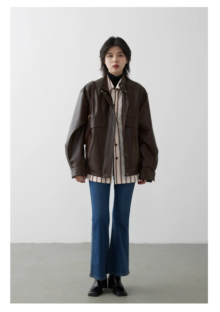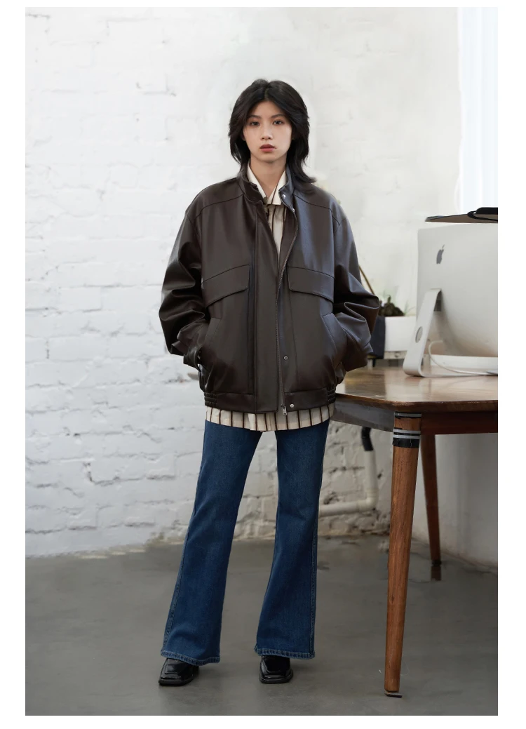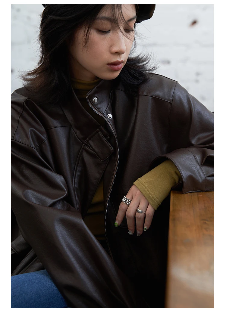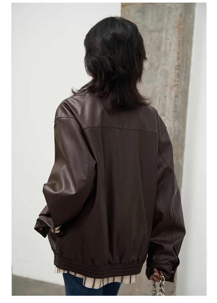 CHIC VEN Giacca da donna a maniche lunghe Solido colletto alla coreana spesso PU Cappotto in ecopelle Top femminile Cappotto trapuntato Autunno Inverno 2024