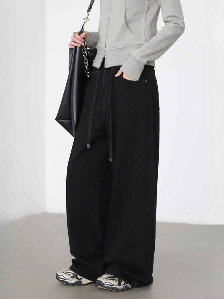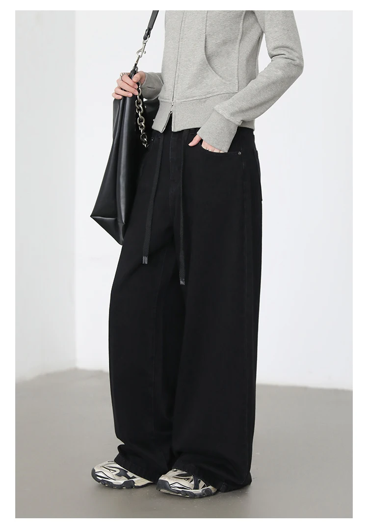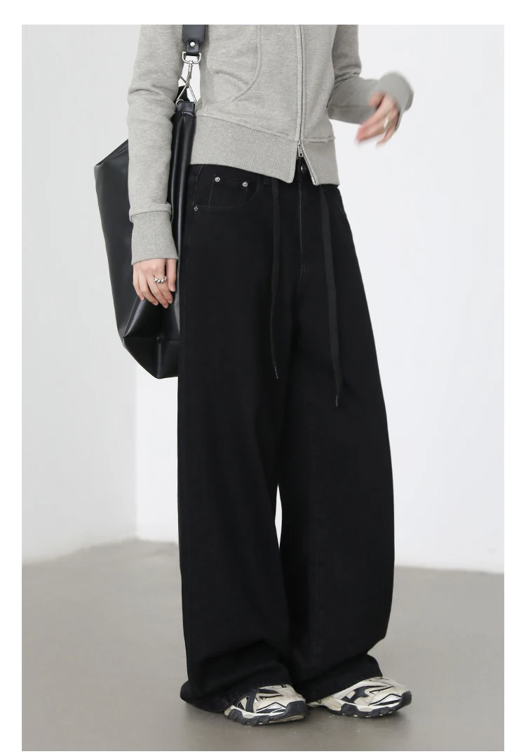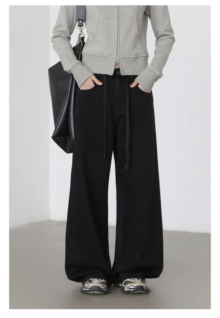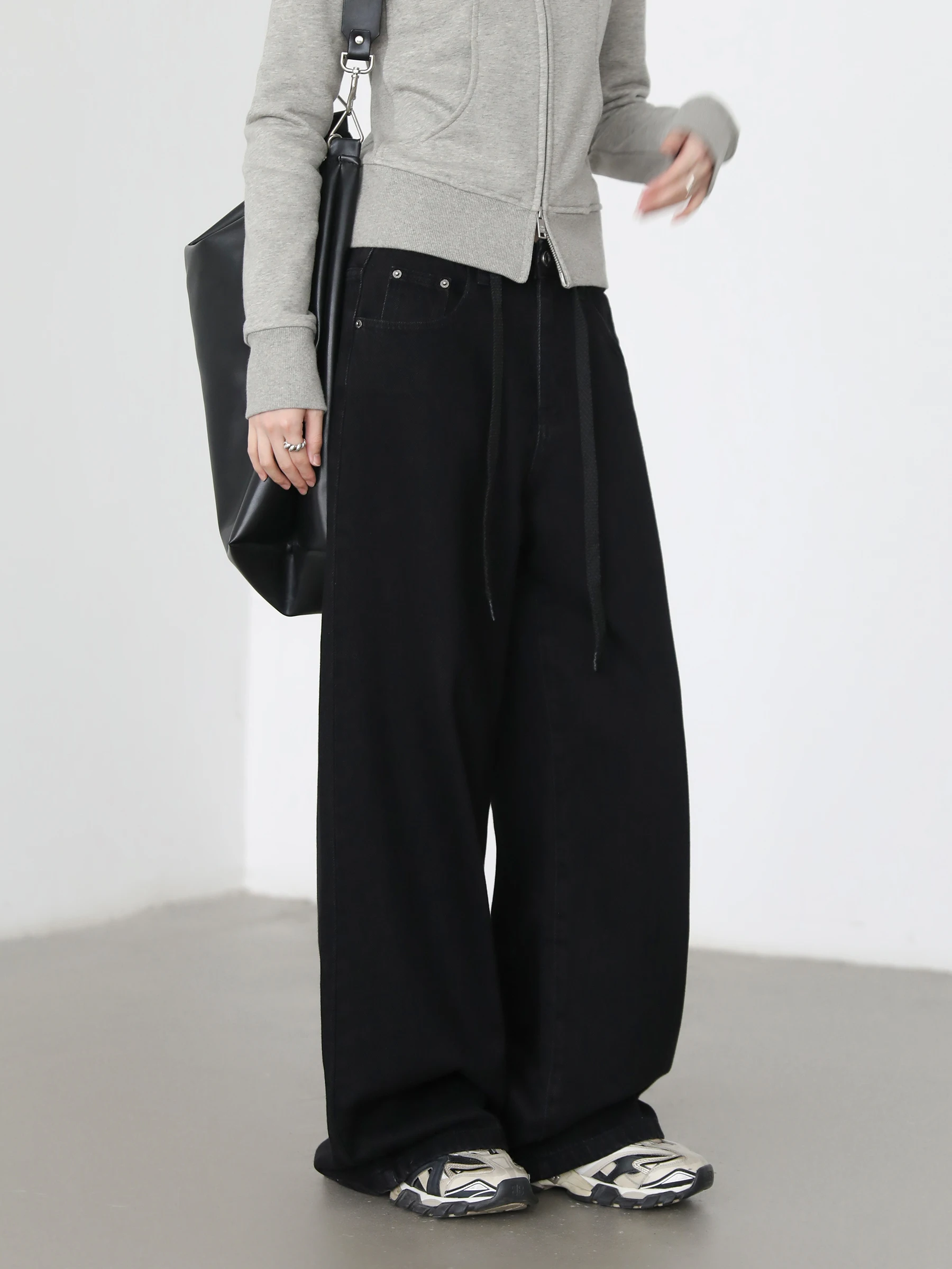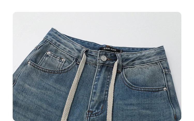 CHIC VEN Pantaloni in denim da donna Solid Loose Casual Retro Jeans con coulisse Pantaloni femminili a gamba dritta Primavera Autunno 2025