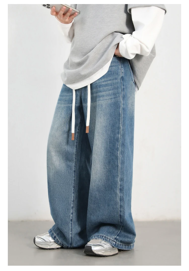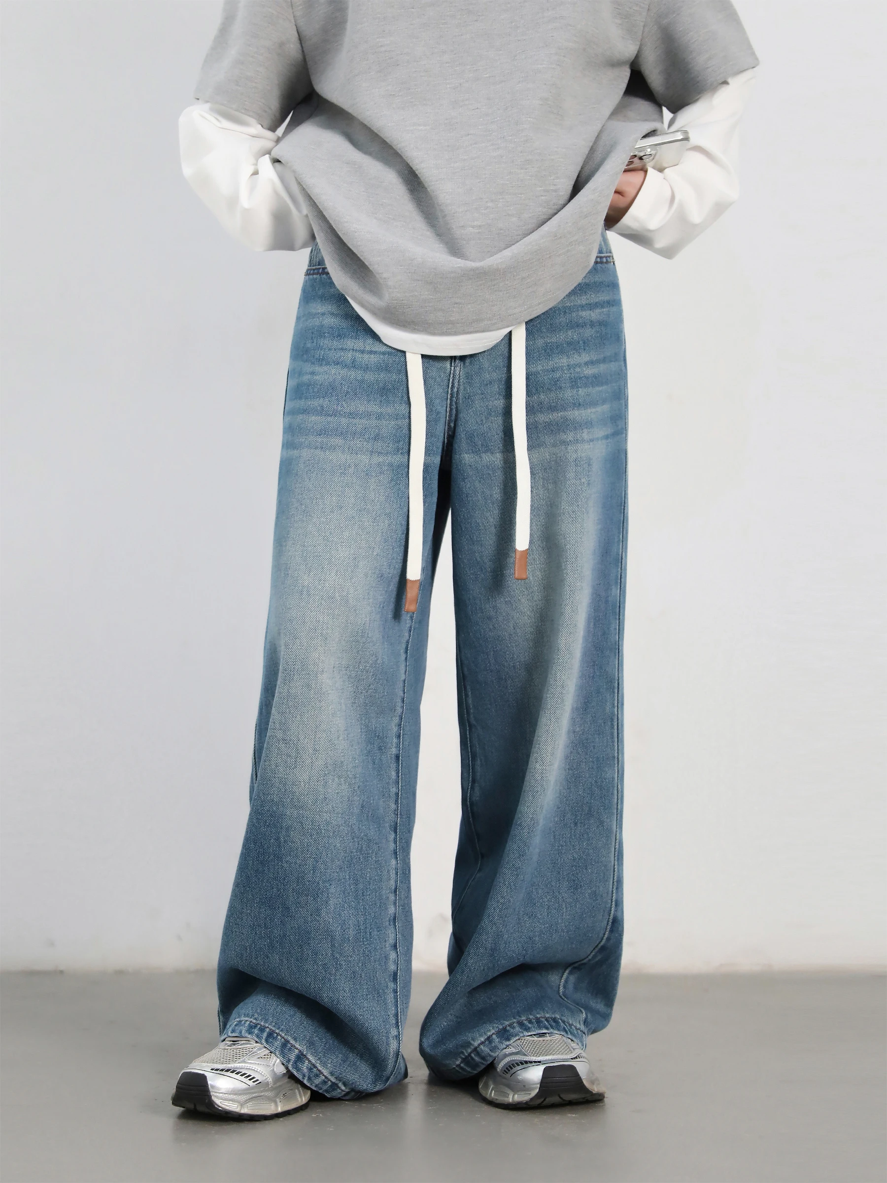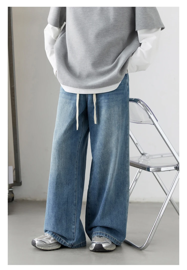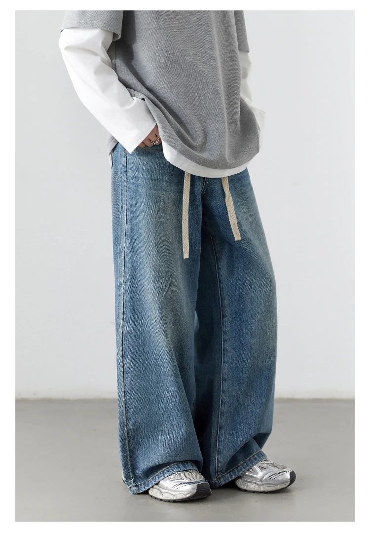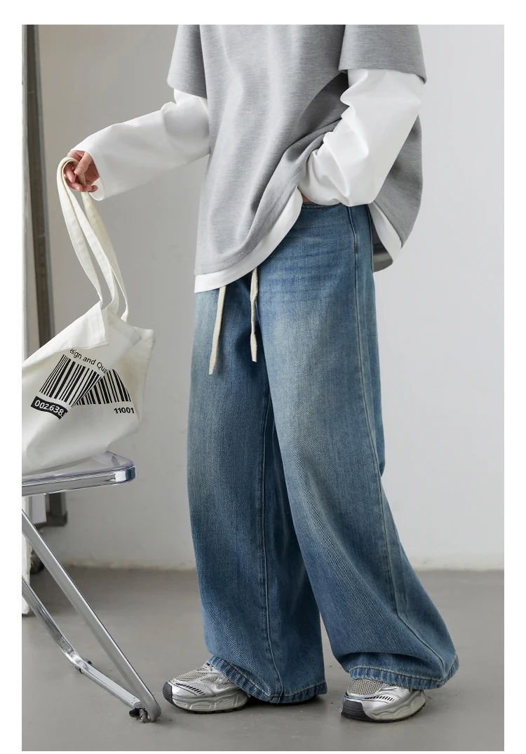 CHIC VEN Pantaloni in denim da donna Solid Loose Casual Retro Jeans con coulisse Pantaloni femminili a gamba dritta Primavera Autunno 2025