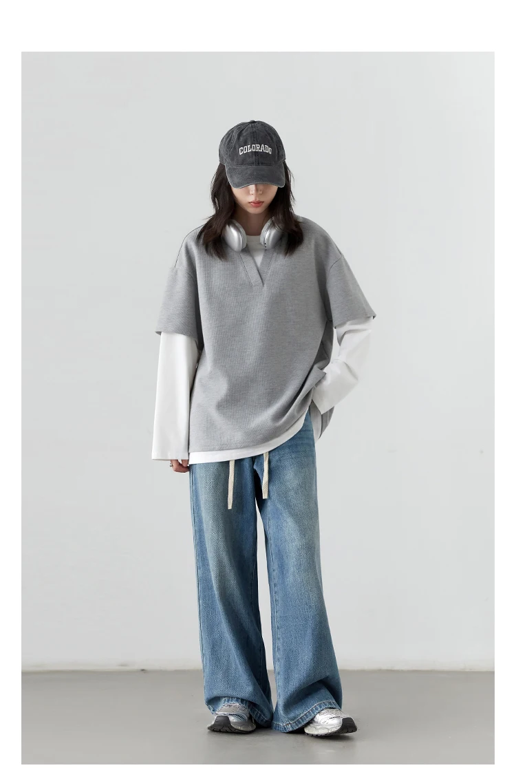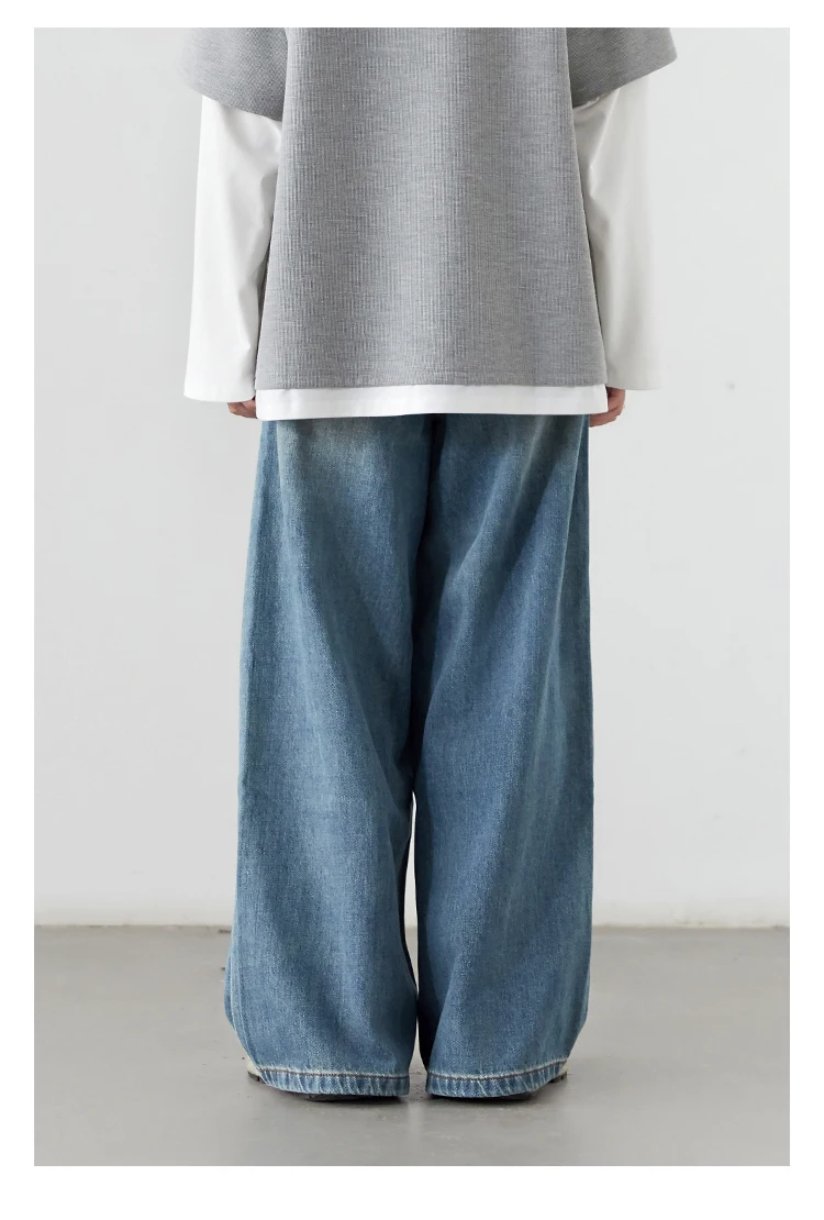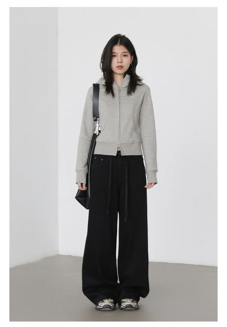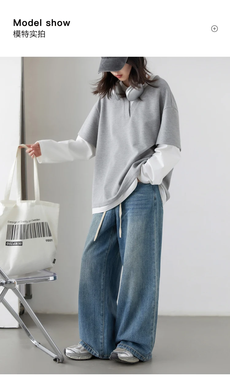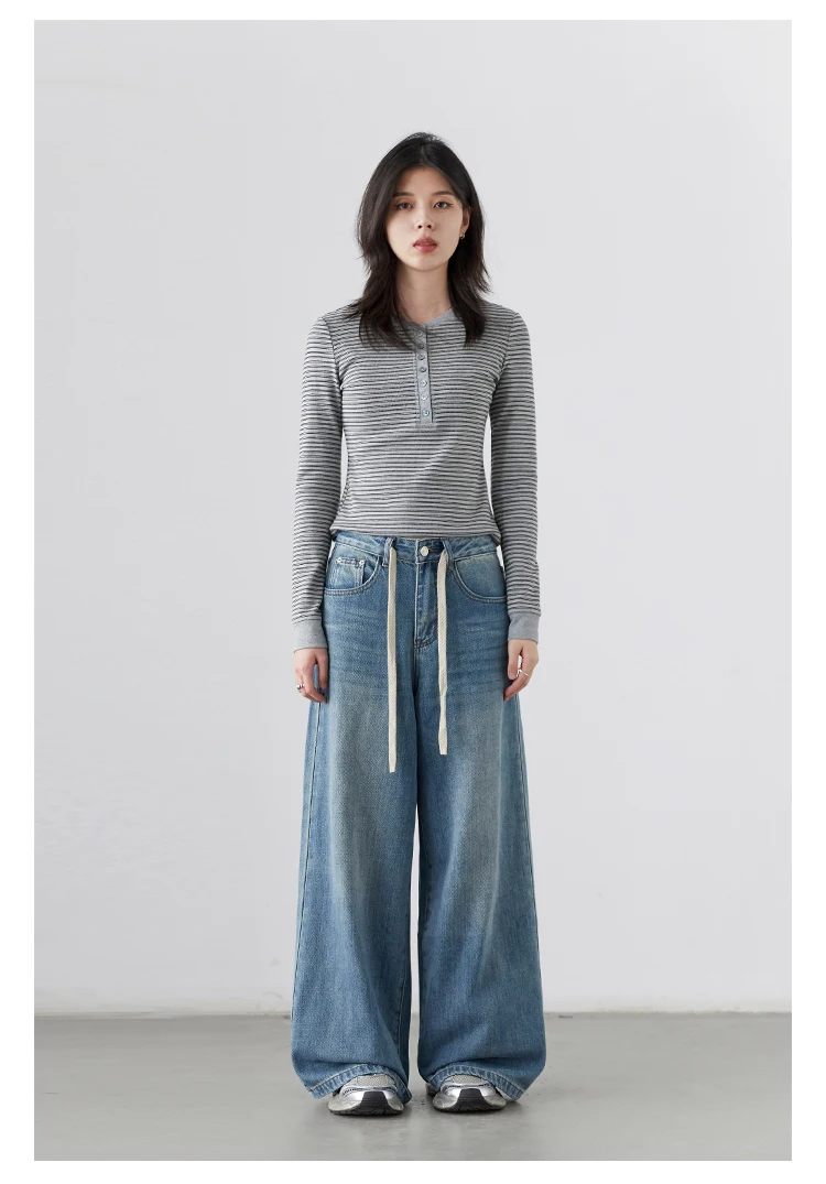 CHIC VEN Pantaloni in denim da donna Solid Loose Casual Retro Jeans con coulisse Pantaloni femminili a gamba dritta Primavera Autunno 2025