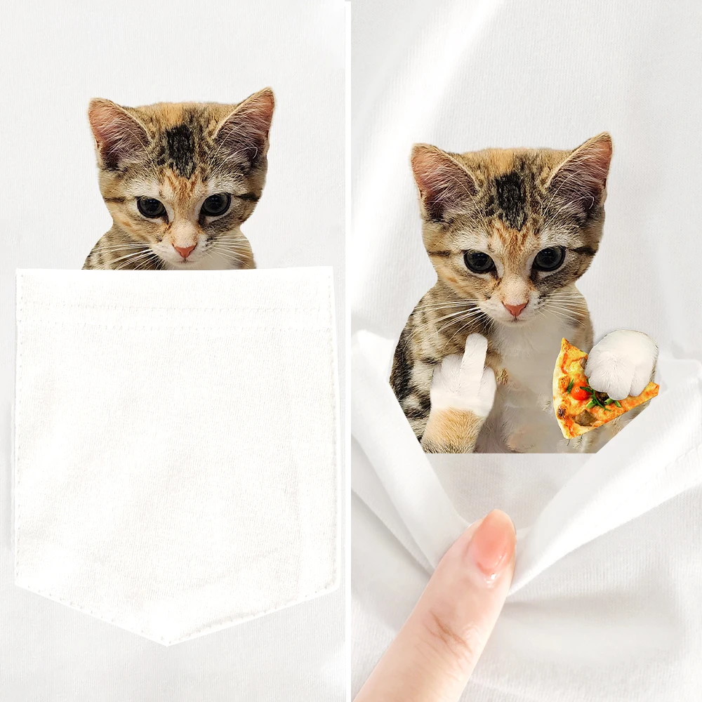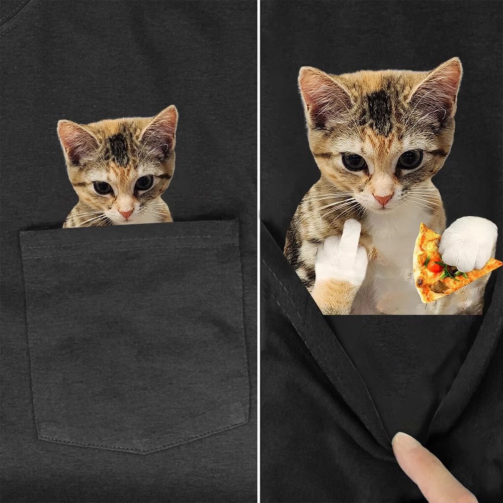 CLOOCL Gatti Divertenti T-shirt Simpatico Gattino Dito Medio Pizza Tasca T-shirt in cotone da uomo per donna Camicie a maniche corte Hip Pop Top