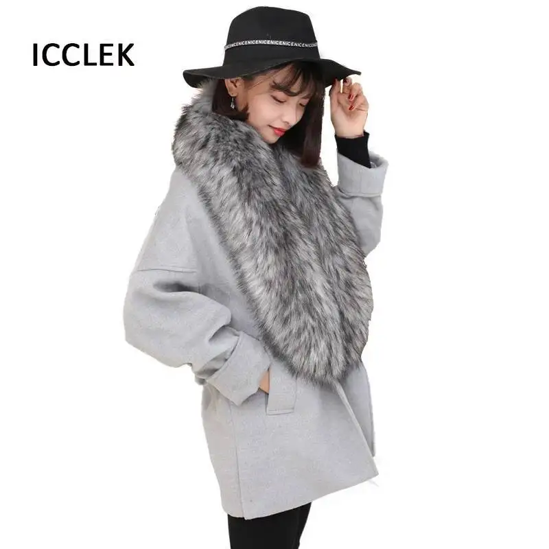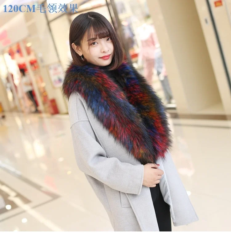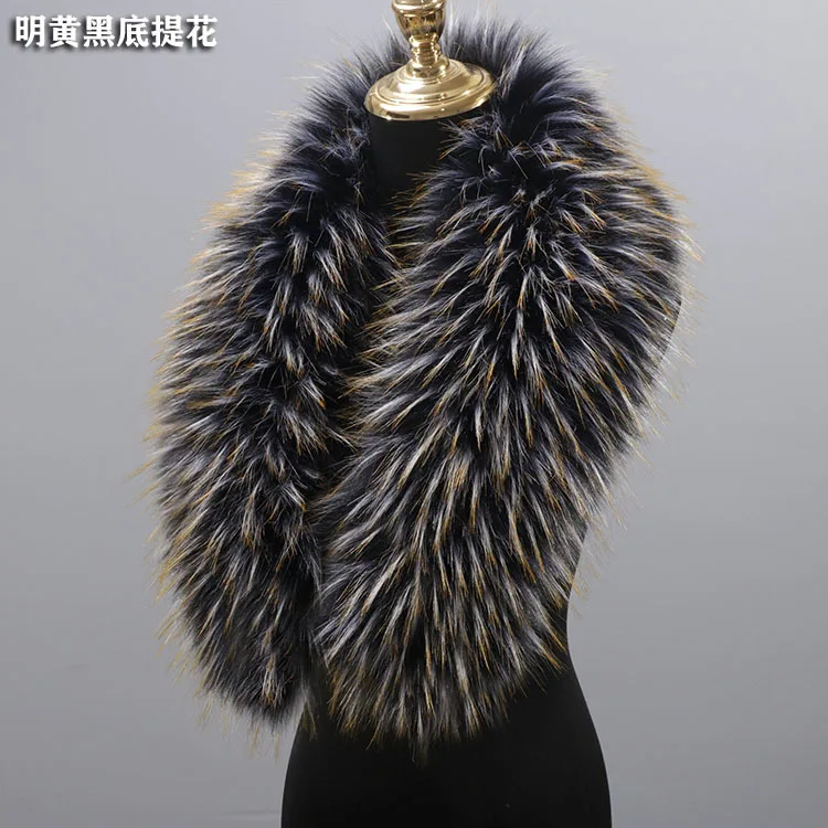 Colletto in pelliccia sintetica da donna scialle caldo invernale sciarpa imitazione collo di pelliccia di procione giacche cappotto cappello striscia collo di pelliccia finta di grandi dimensioni